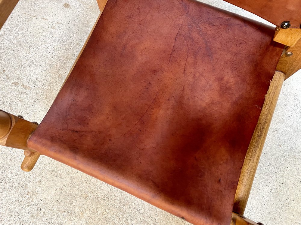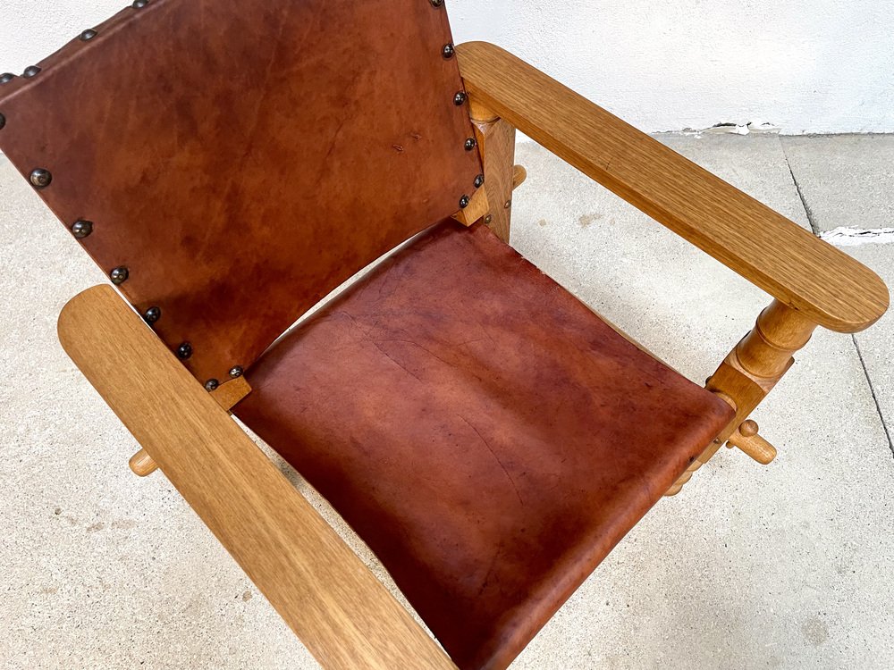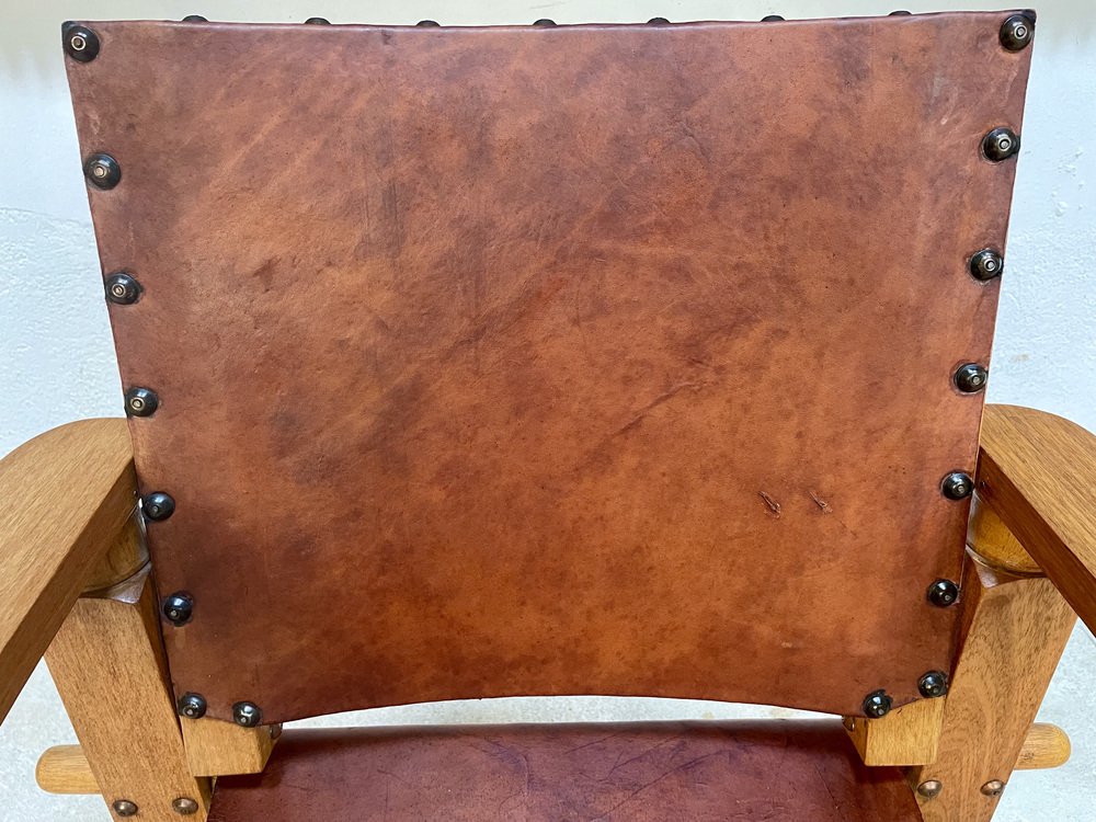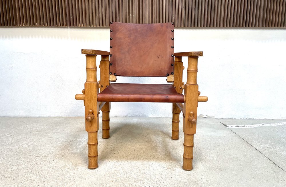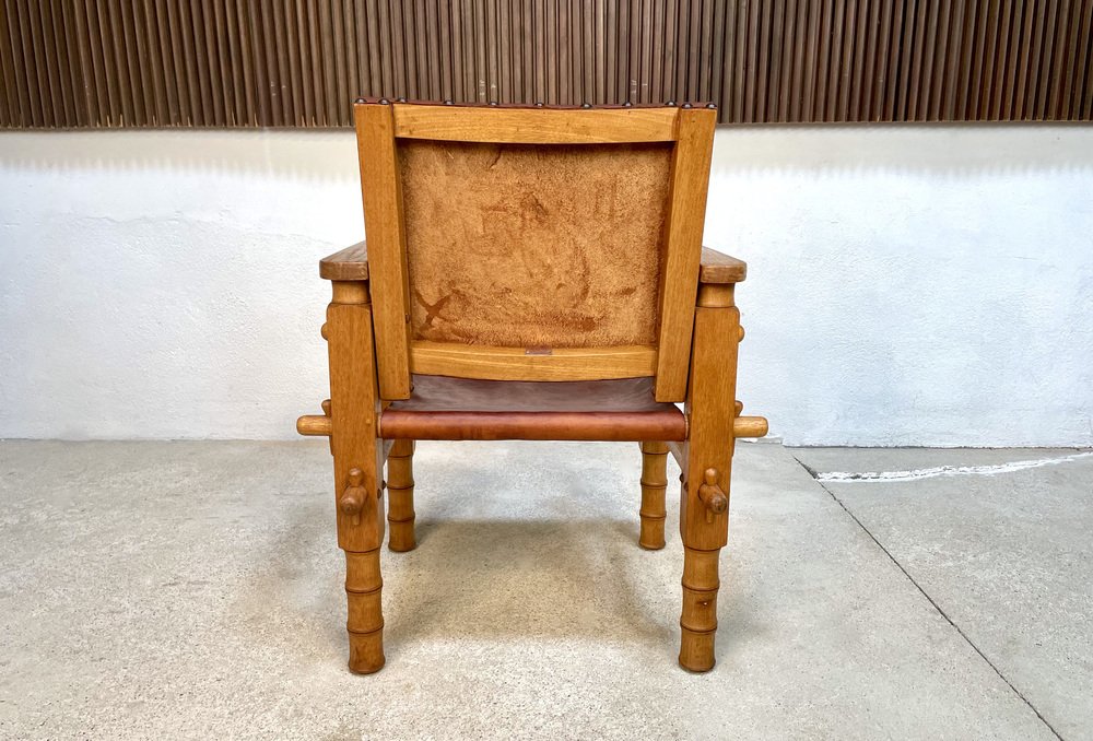 Südamerikanischer Brutalistischer Leder & Eichenholz Safari Stuhl, Kolumbien, 1960er