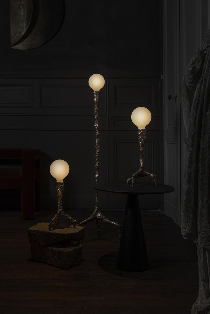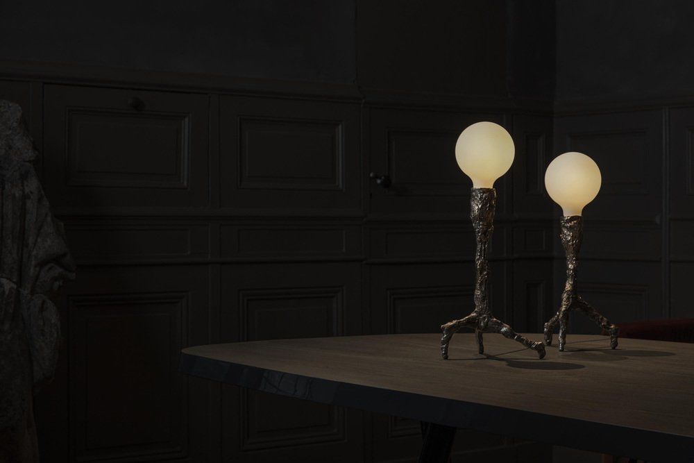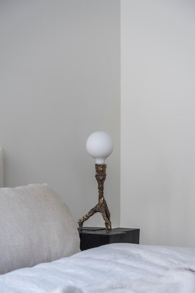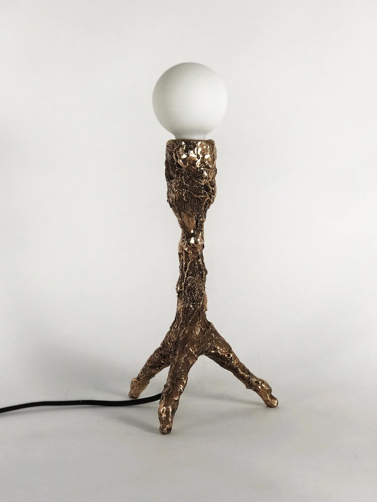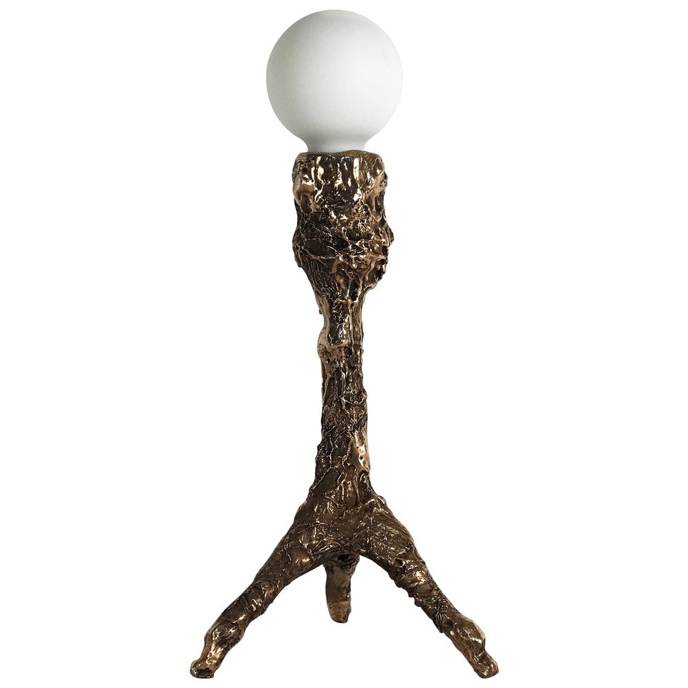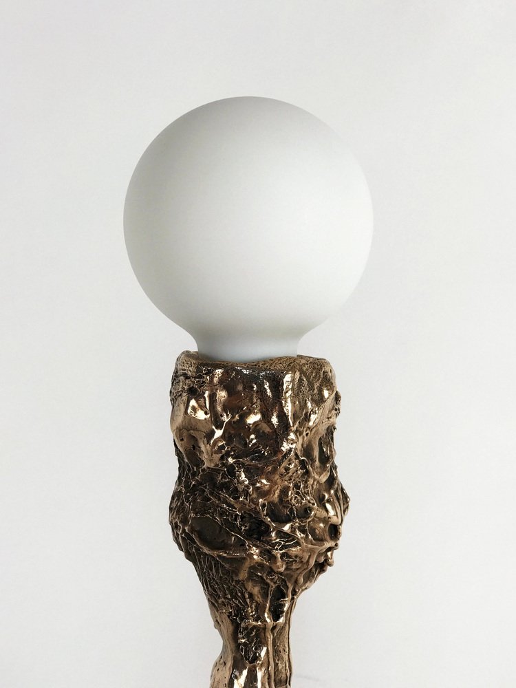 Unique bronze sculpted table lamp - signed by William Guillon Sweet Thing I Dimensions: 39 x 17 x 17 cm Weight: 2.5 kg. Bronze Unique Lamp Edition 1/1, signed Bulb E27, 540 lumens Unique lamp hand-sculpted by William Guillon. William Guillon William Guillon’s main influences are strong artistic movements, often dark and filled with modern melancholy. Obsessed with a futuristic dystopic vision, the issues he addresses are always loaded with his attraction for a strong imagery. Beyond his influences, he has always been driven by his love for noble materials, raw materials to work on and embellish without altering them. Always valuing handicraft work, his objects are designed as high quality products, without ever compromising the aesthetics for the easy option. William Guillon has set up his studio with, as a basis, a reflexion around black and darkness. His interest for luminous objects was indeed born of a desire to carve this darkness with light as if it were a pure and precious material. William Guillon’s creations are handmade in France.