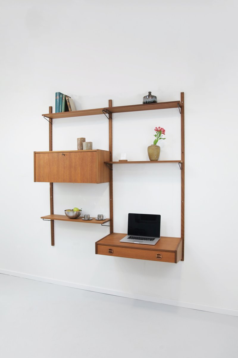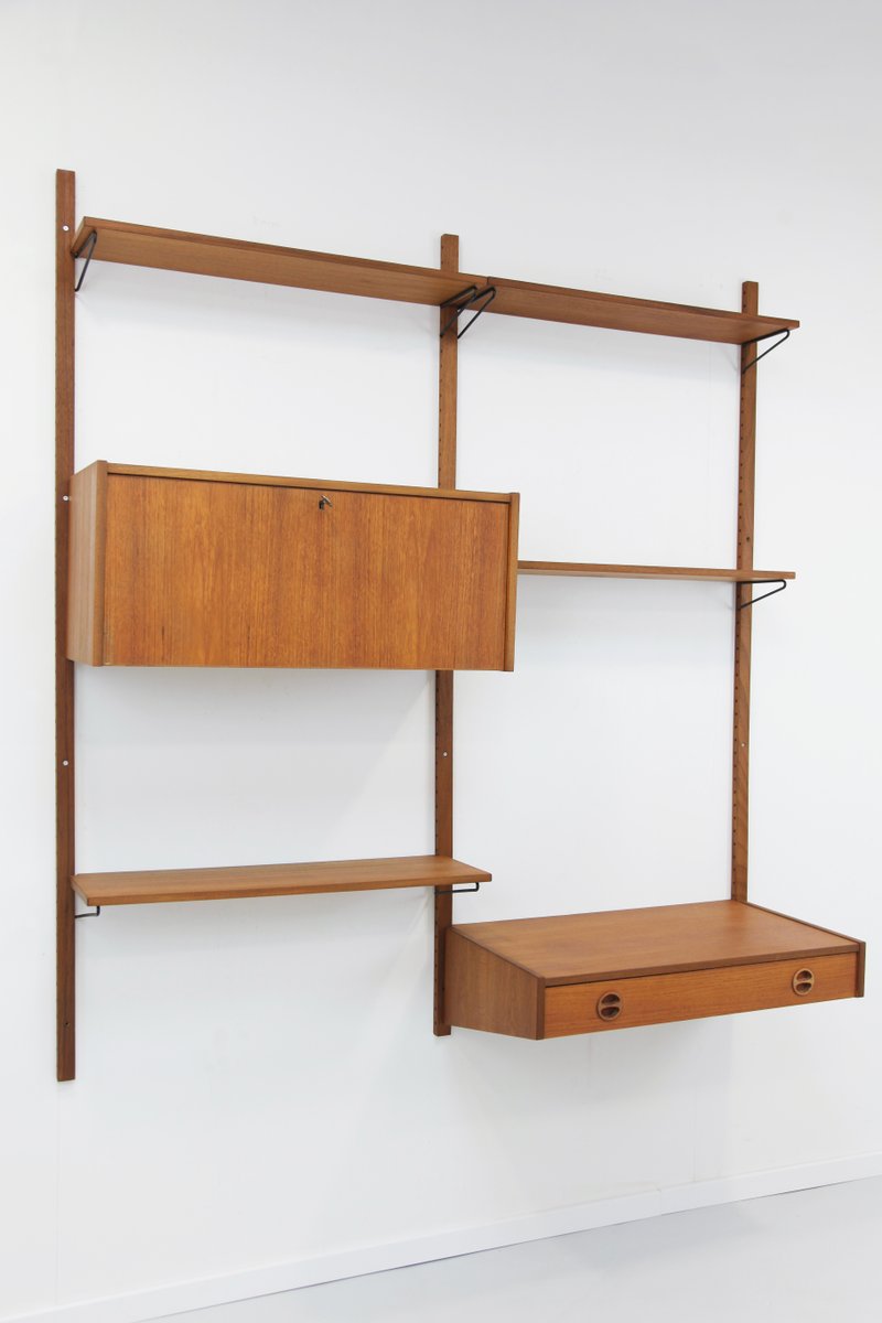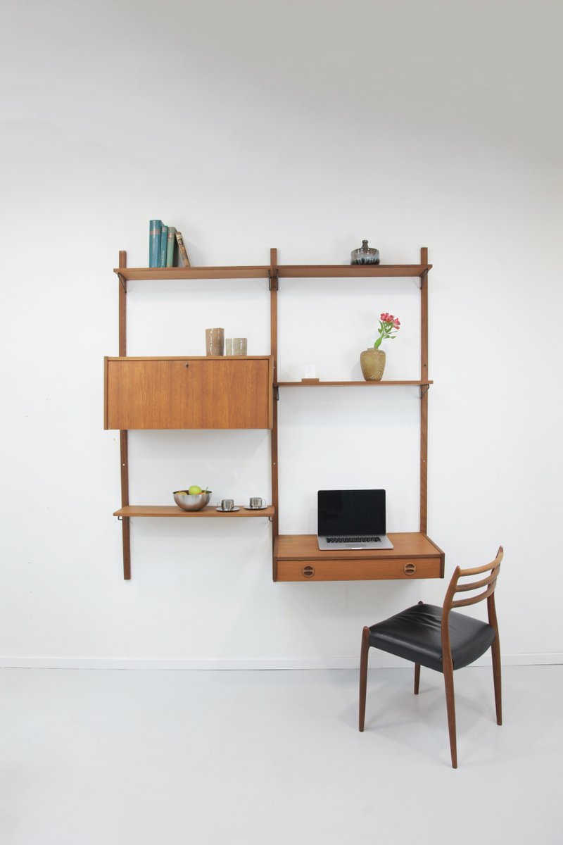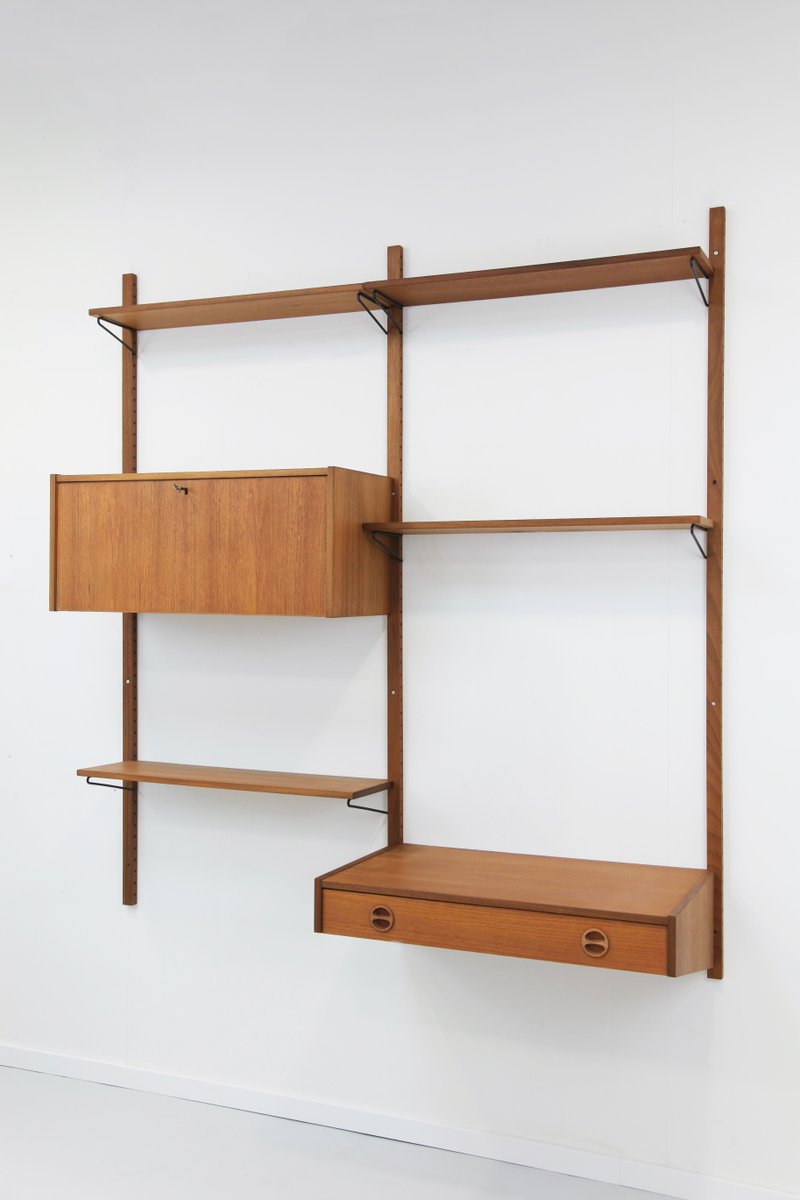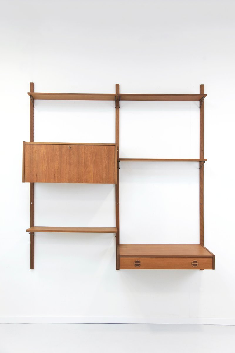 Teak Wandregal mit 2 Streifen von PS System, 1960er, 9 . Set