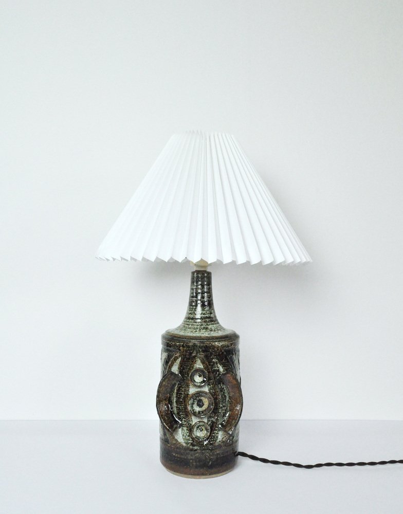 Keramische Tischleuchte mit skulpturalem, abstraktem Ausdruck. Glasur in verschiedenen Tönen von Grau, Türkis, Grün, Braun und Schwarz. Entworfen von Arne Finne Nielsen in den 1960er und 1970er Jahren für Søholm, Dänemark. Signiert von Designer und Hersteller. Sehr guter Zustand.