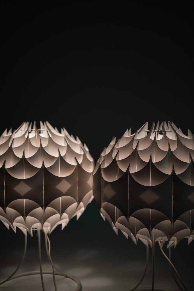 Tischlampen aus Weiß lackiertem Metall von Milanda Havlova, 1970er, 2er Set