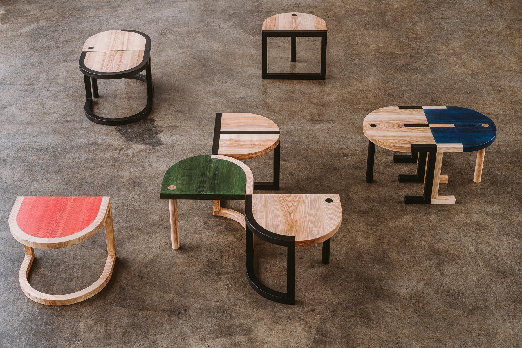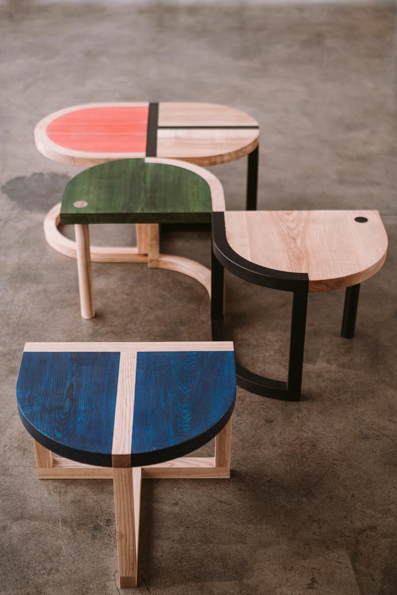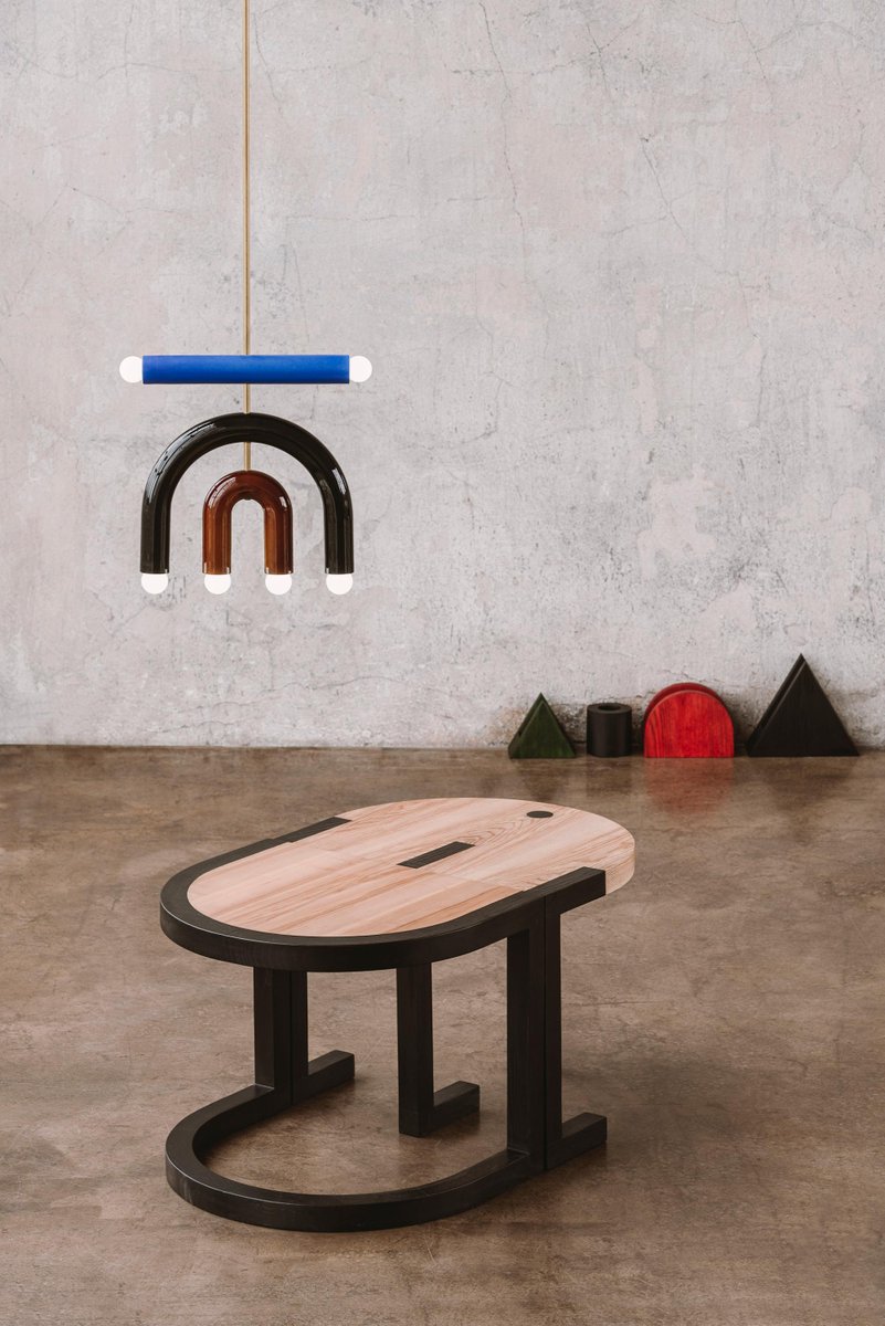 TRN table II by Pani Jurek Dimensions: D 44 x W 55 x H 45 cm Material: ash wood. A fascination with Jan Tarasin paintings and graphics was a starting point for the creation of the whole collection. Tarasin was interested in the world of objects. He began with a realistic record of objects that he simplified and reduced until a system of abstract signs was formed. In her latest collection, Pani Jurek reverses this process, turning ideograms into things again. Magda Jurek is an artist, designer, and the founder of the eponymous brand and design studio Pani Jurek. She graduated with a painting degree from the Academy of Fine Arts in Warsaw and currently utilizes her art studies to bring a conceptual approach to her design work in the aim of creating products that are not obvious and atypical. Apart from a unique design, Pani Jurek's products are handmade and rooted in the language of art. She designs products that can be changed or rearranged depending on the space and awaken the user's own creativity. Magda Jurek is also a co-founder of “Based in Warsaw,” an association set up to enhance social design and increase design in public areas. She is the creator of the bestselling Maria SC chandelier, the awarded TRN lighting and furniture collection as well as an activity book "Psikusy" created to support unbreeds, homeless dogs.