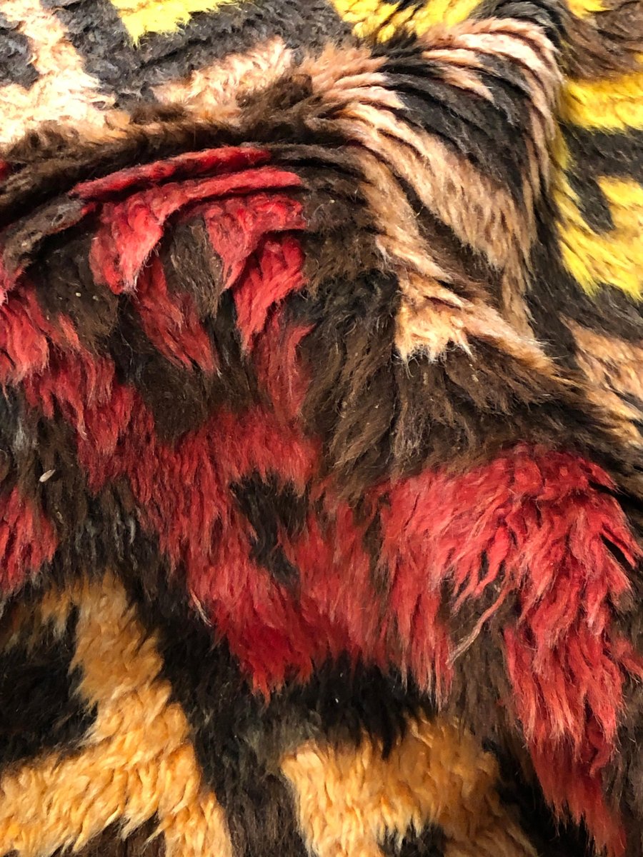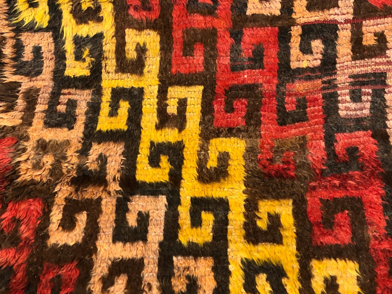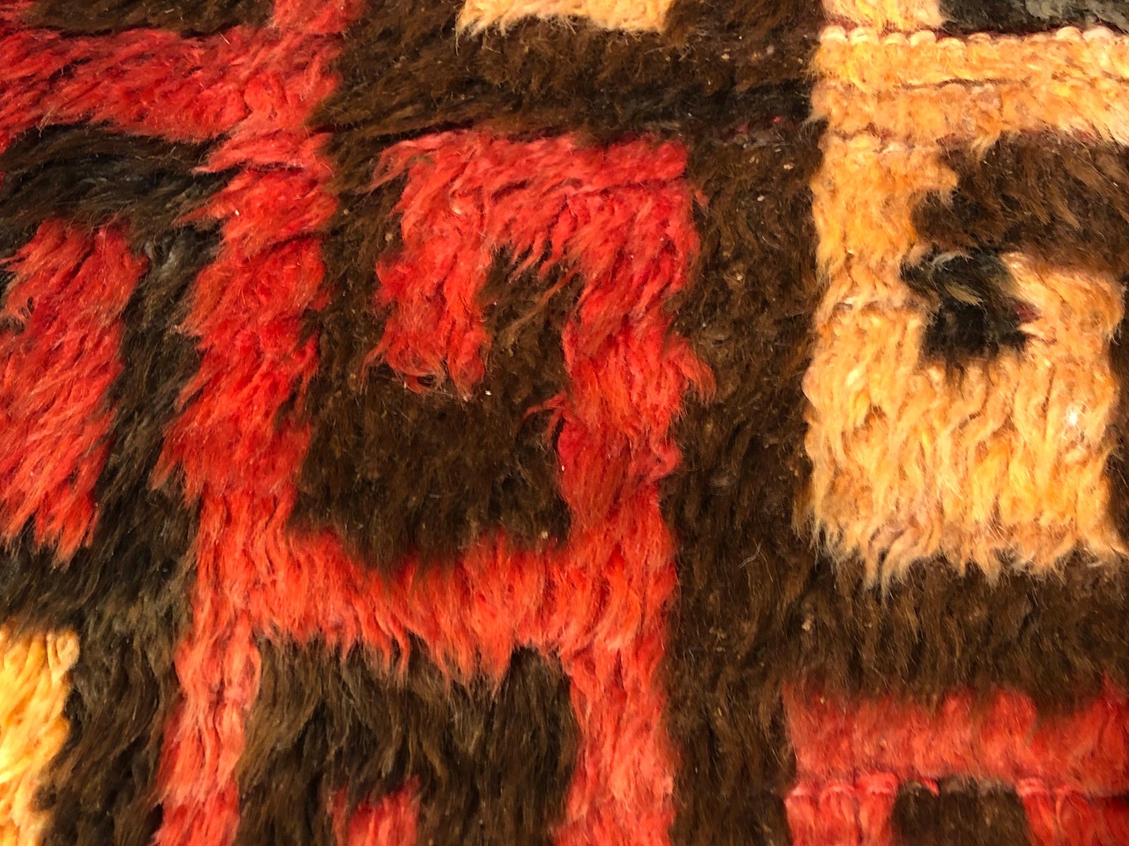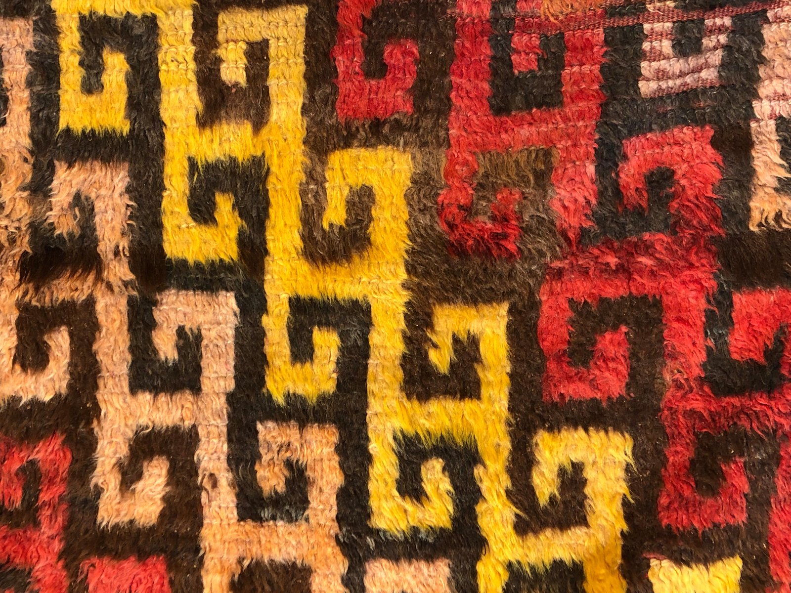 Türkischer Tulu Wollteppich in Rot, Gelb & Braun, 1950er