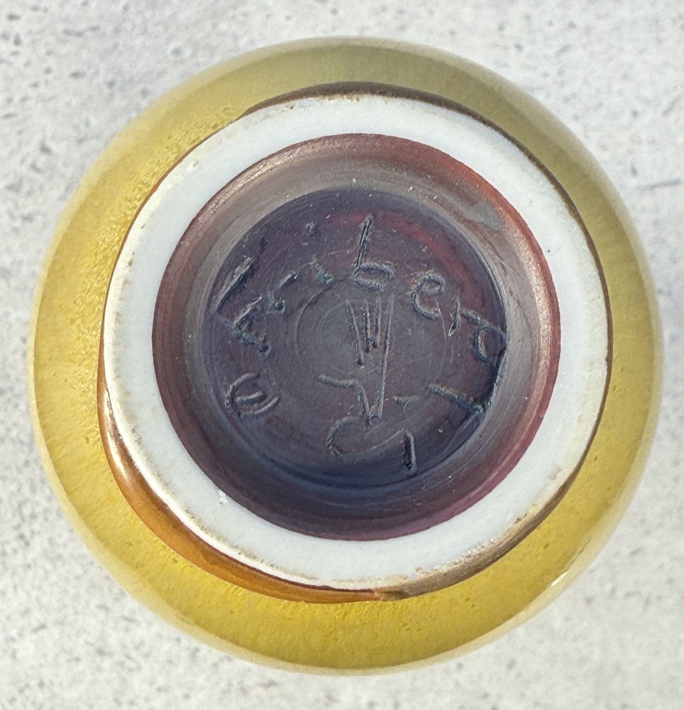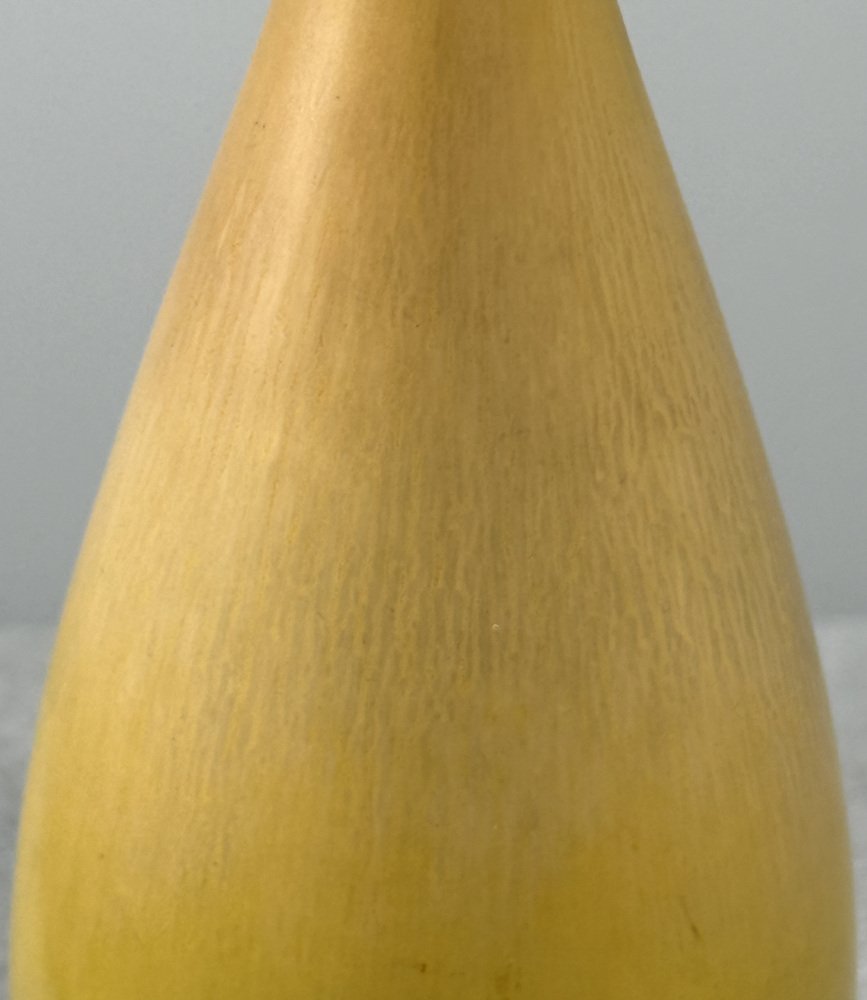 Berndt Friberg (1899-1981) war ein schwedischer Keramikkünstler, der in den 1950ern besonders aktiv war. Er war für sein meisterliches Können bezüglich der Form und seine geometrischen und glänzenden Glasuren bekannt. Ihm wird außerdem, gemeinsam mit seinen Mentoren Wilhelm Kåge und Stig Lindberg zugeschrieben, das G-Studio von Gustavsberg in das goldene Zeitalter der Keramik geführt zu haben.