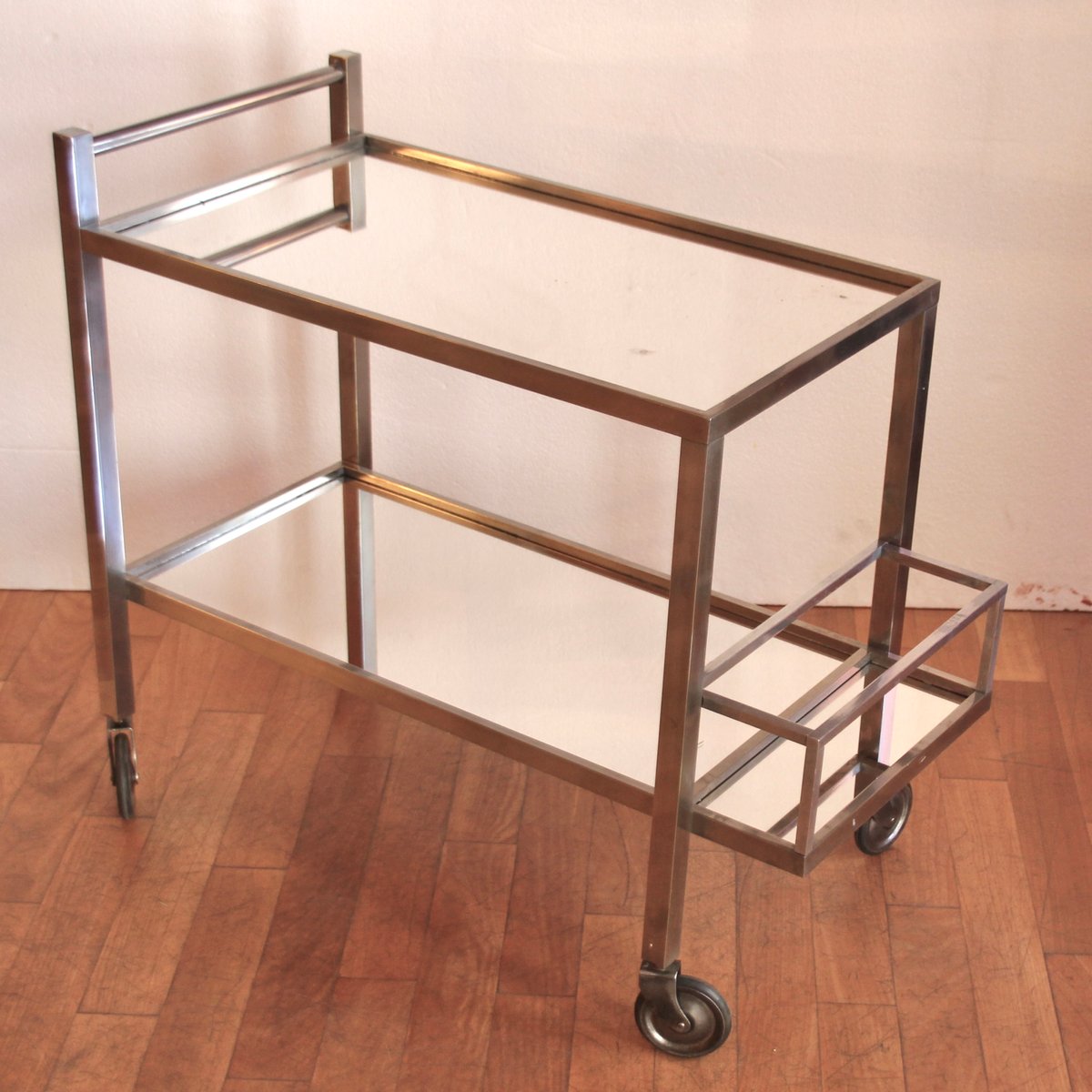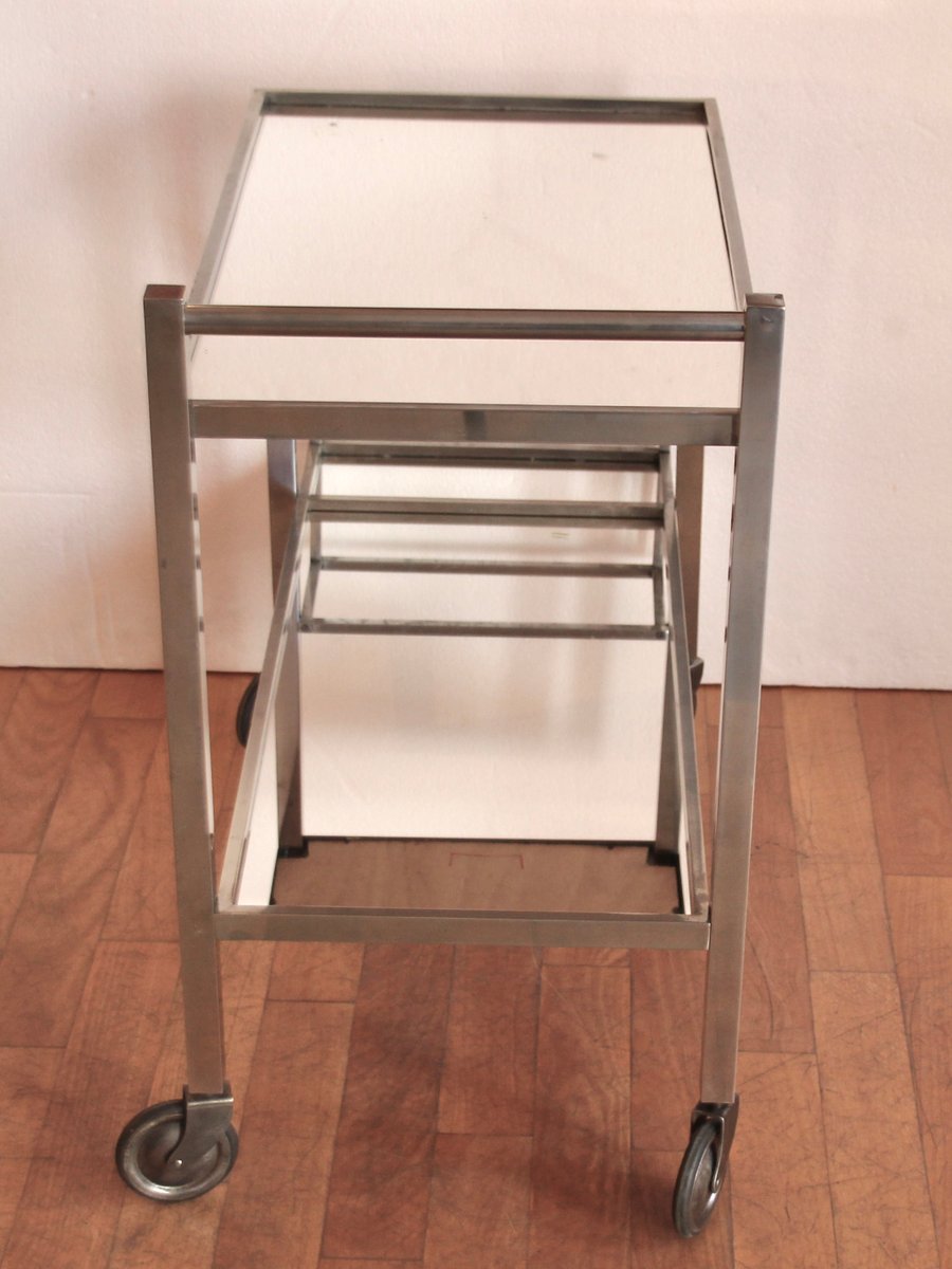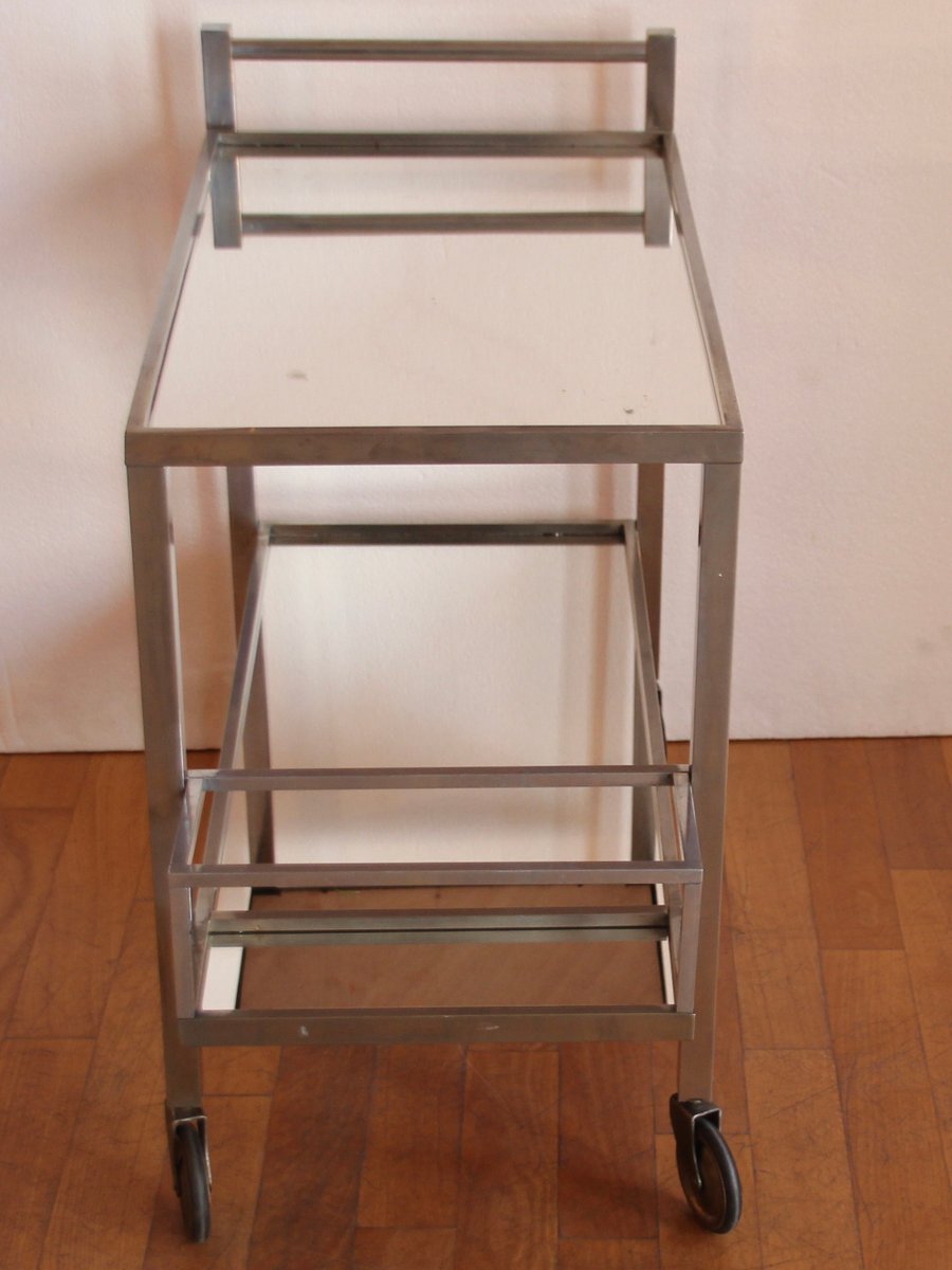 Verchromter französischer Vintage Art Deco Barwagen von Jacques Adnet, 1930er