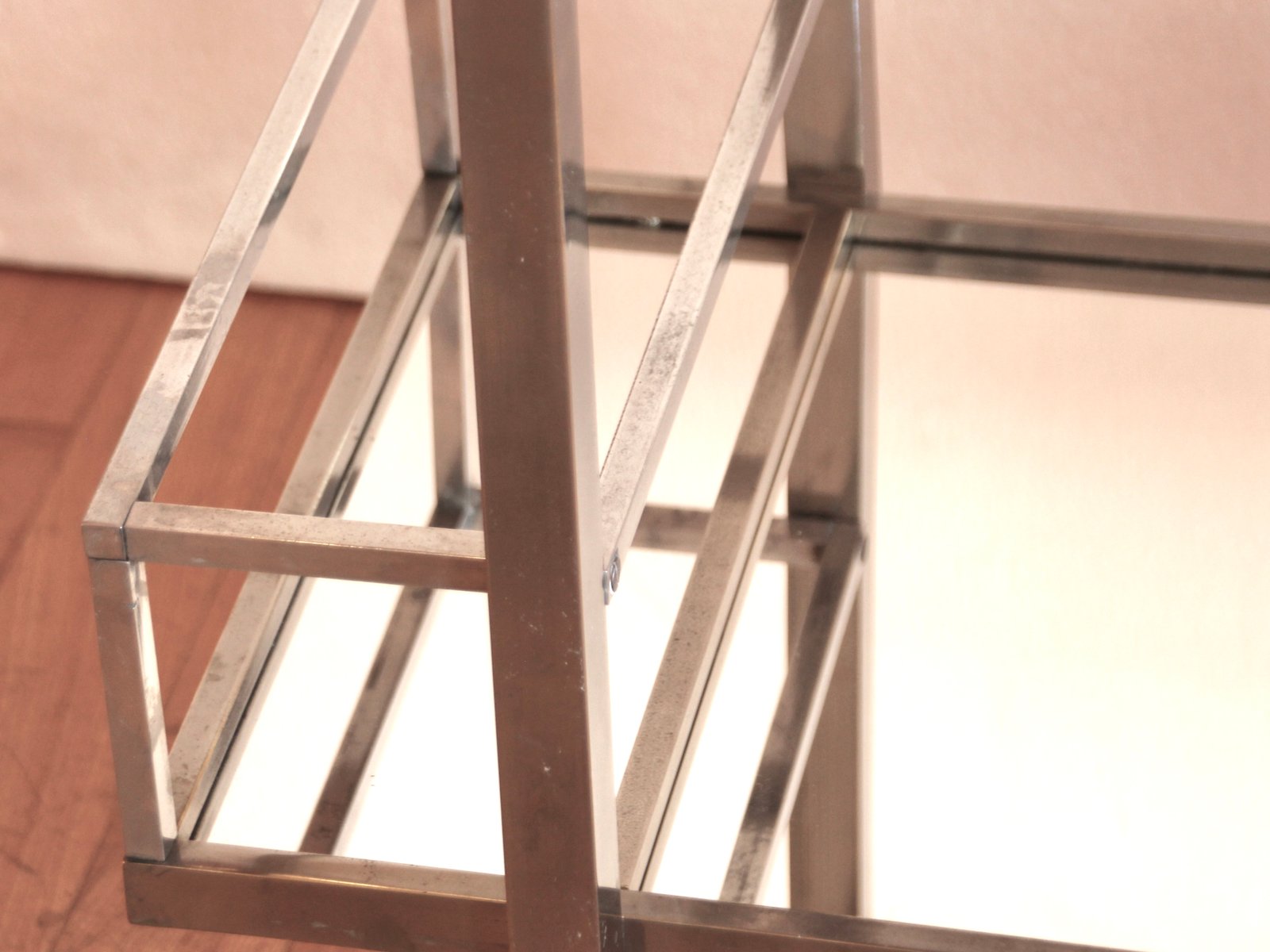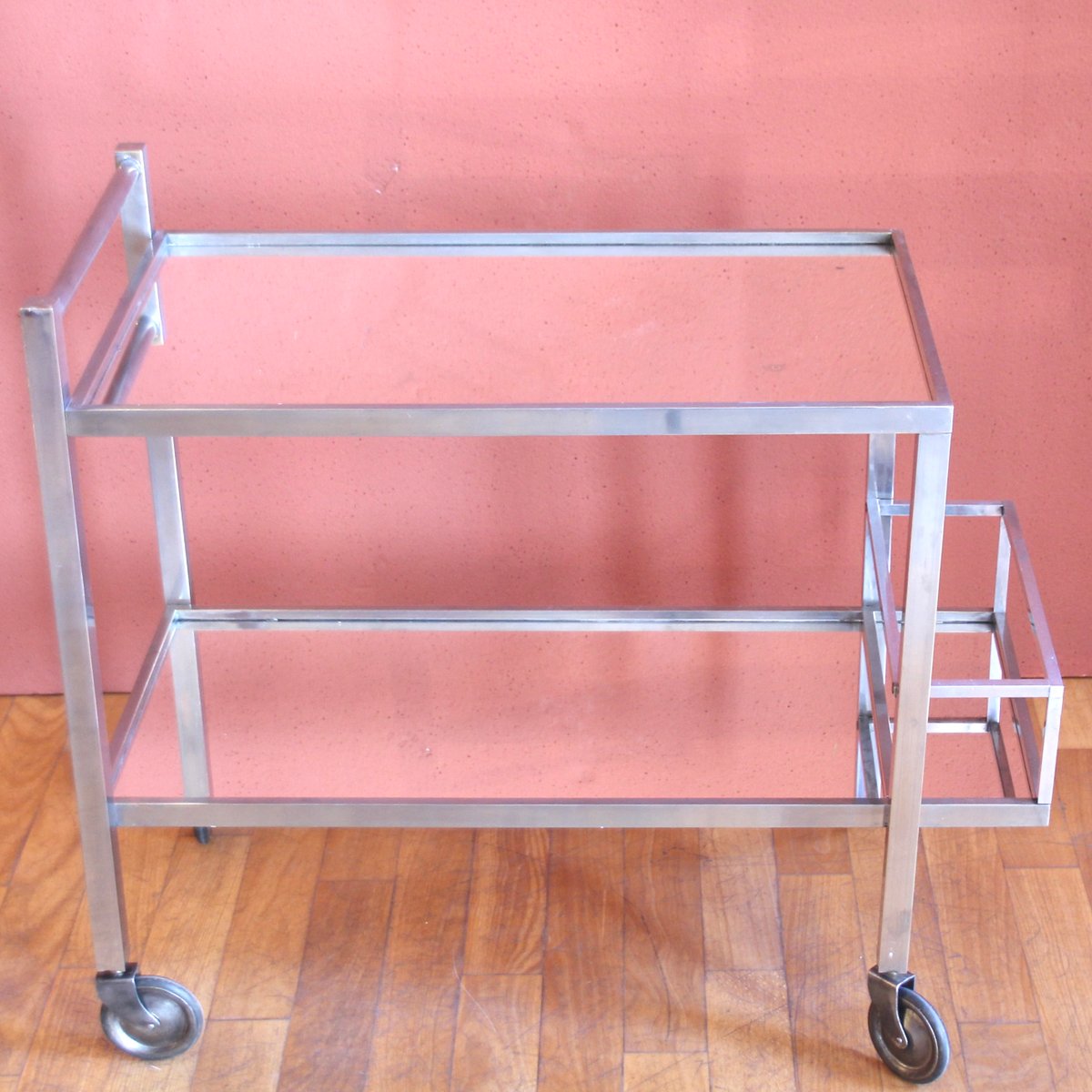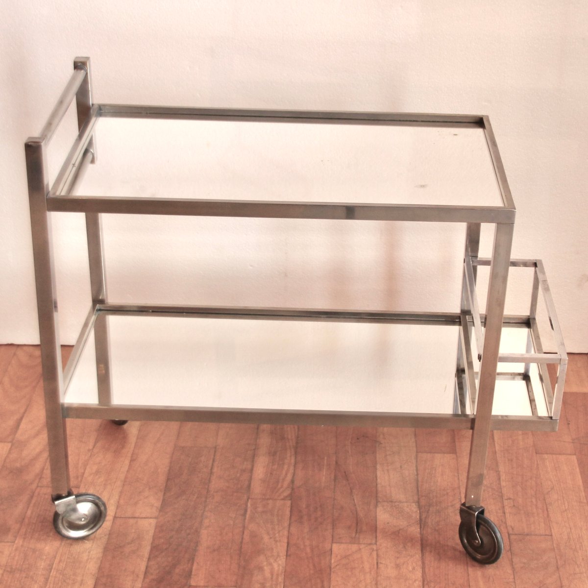 Verchromter französischer Vintage Art Deco Barwagen von Jacques Adnet, 1930er