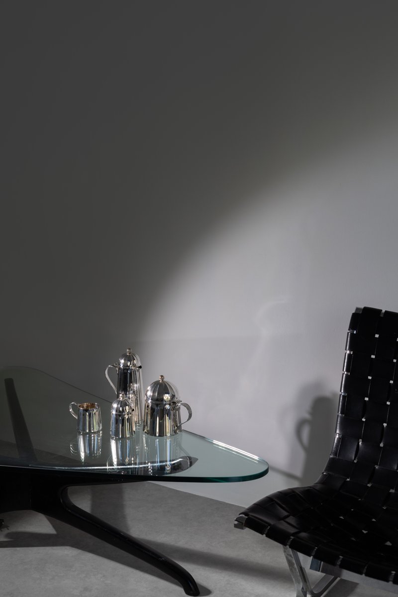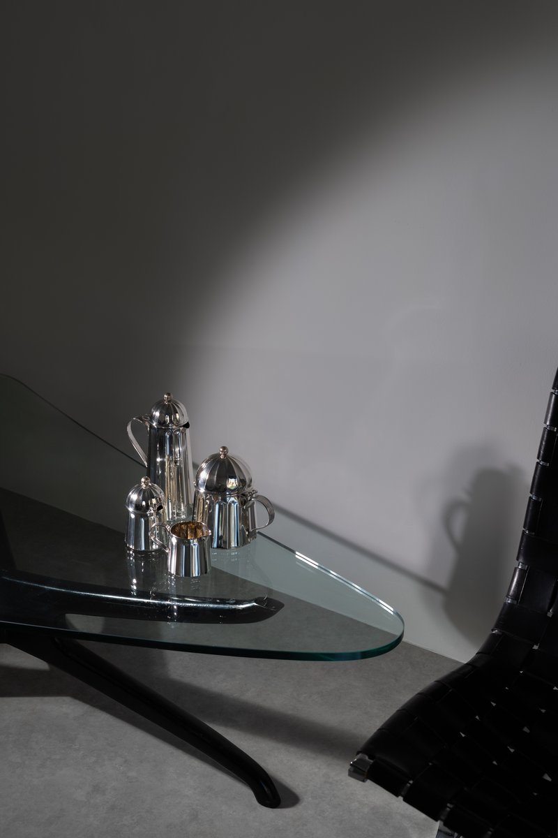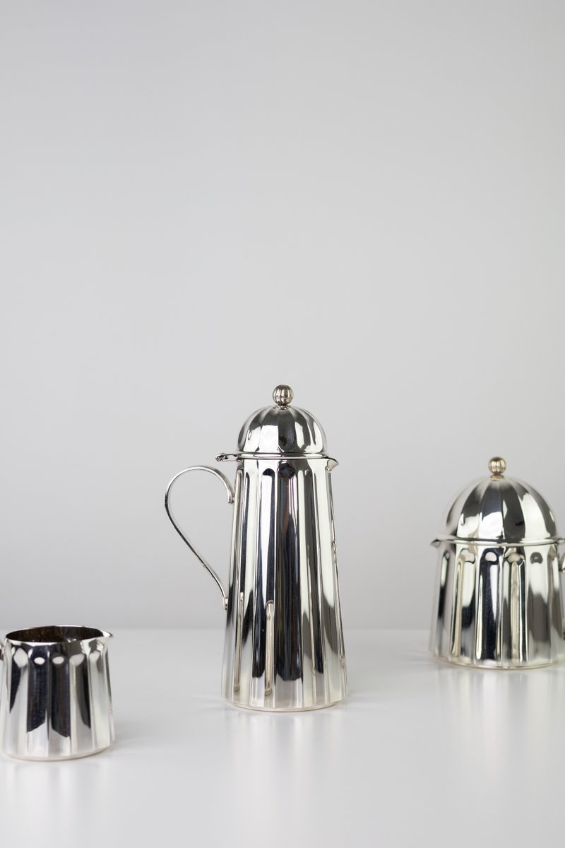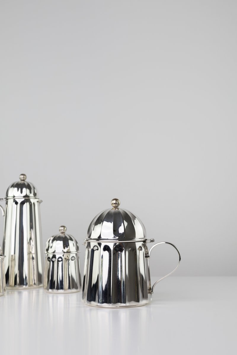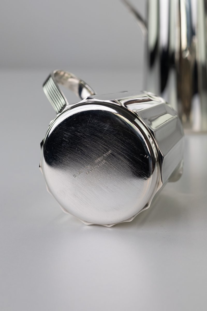A rare coffee and tea service by Massimo Vignelli for Calegaro. Made in Italy in 1980s. Each object is engraved by the author. Unique in its kind, will make a statement, an endless classic touch of antique Italian craftsmanship for your special home.