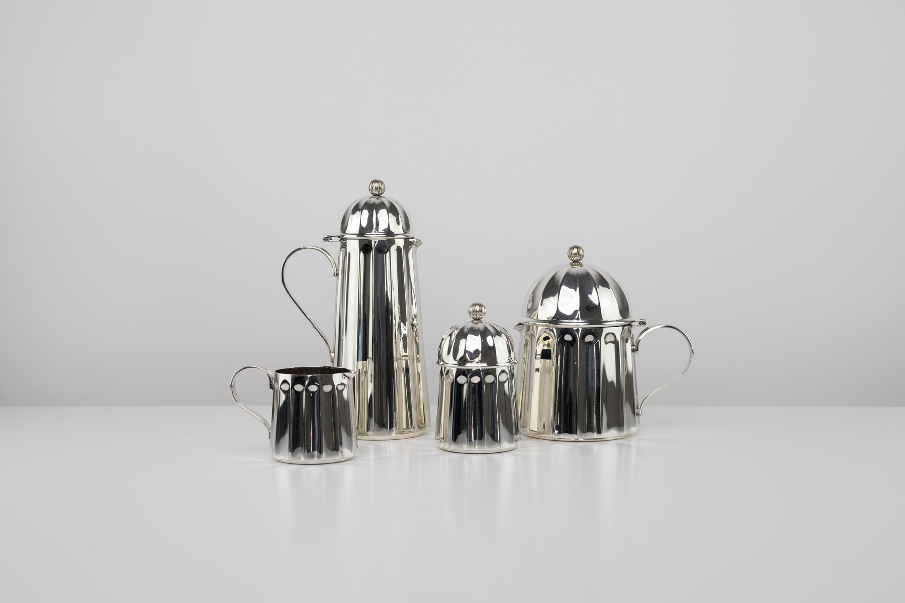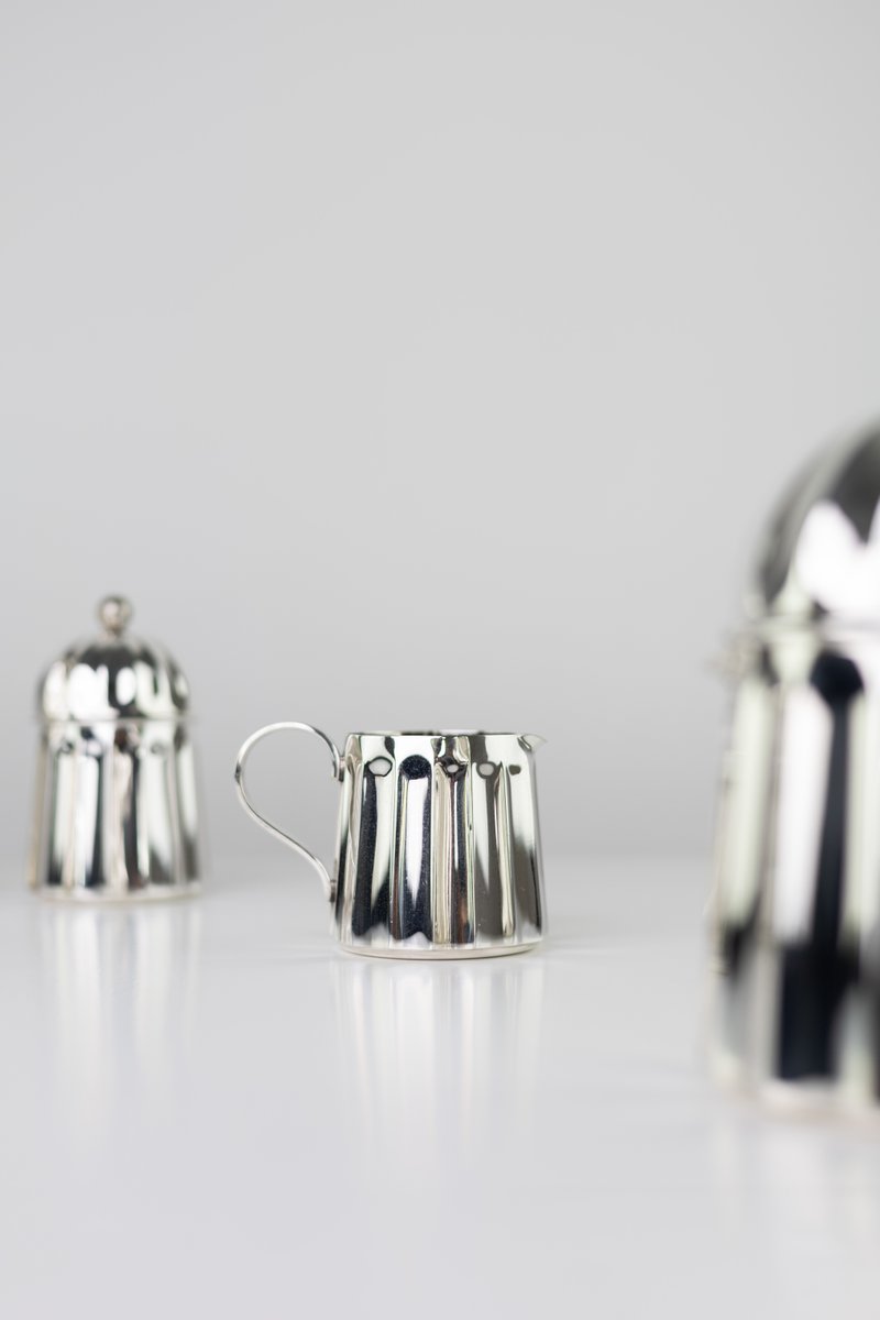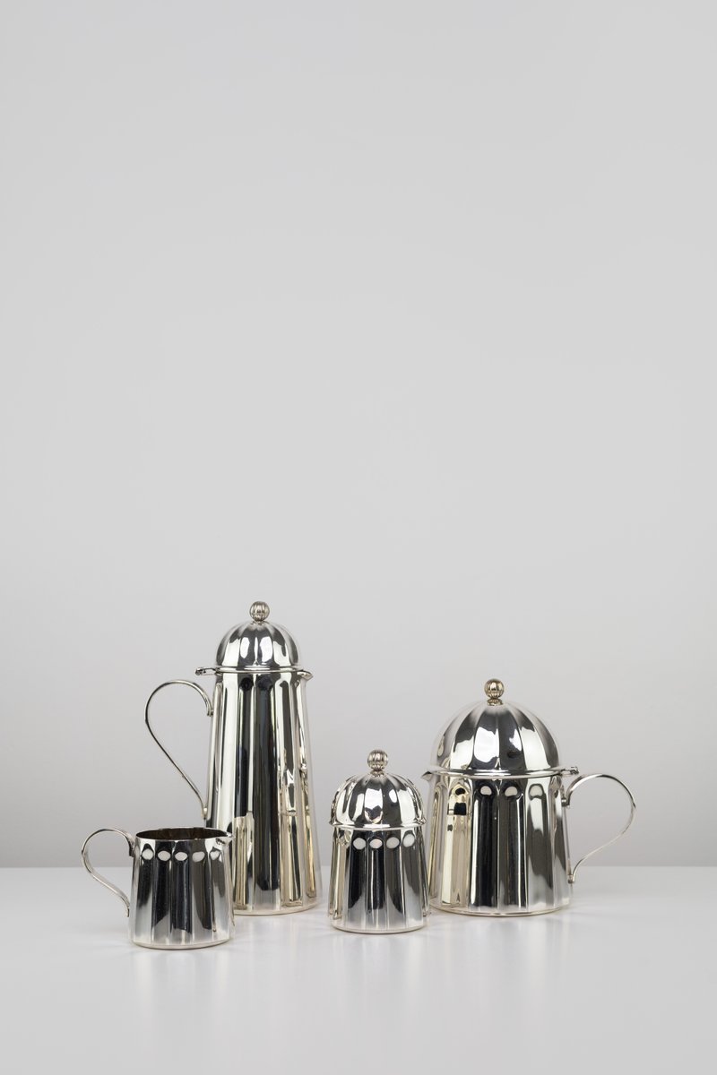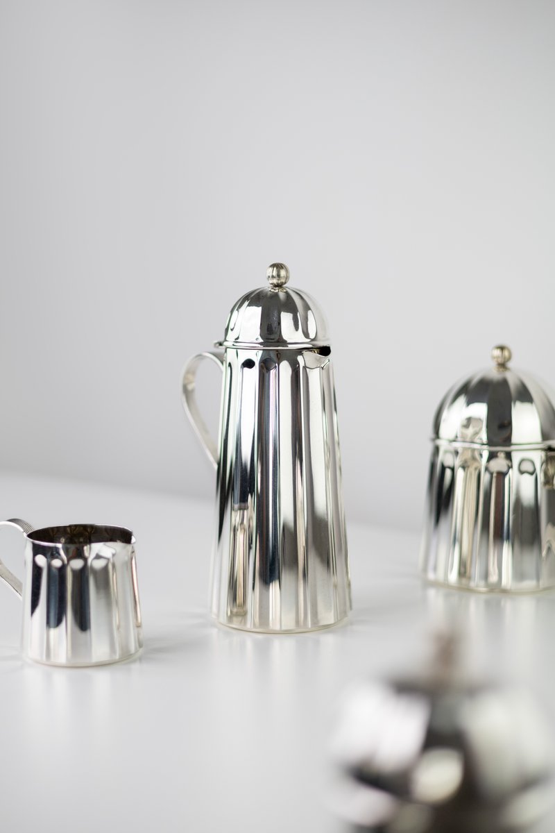 A rare coffee and tea service by Massimo Vignelli for Calegaro. Made in Italy in 1980s. Each object is engraved by the author. Unique in its kind, will make a statement, an endless classic touch of antique Italian craftsmanship for your special home.