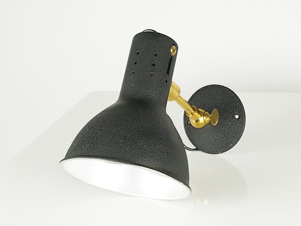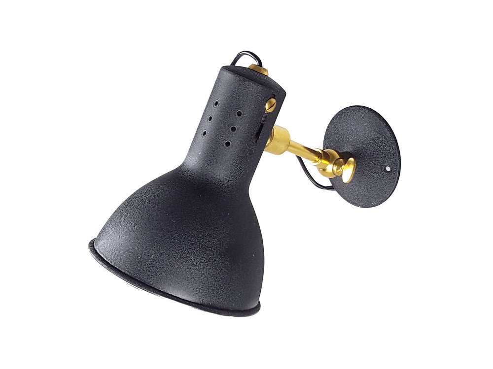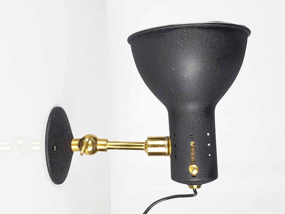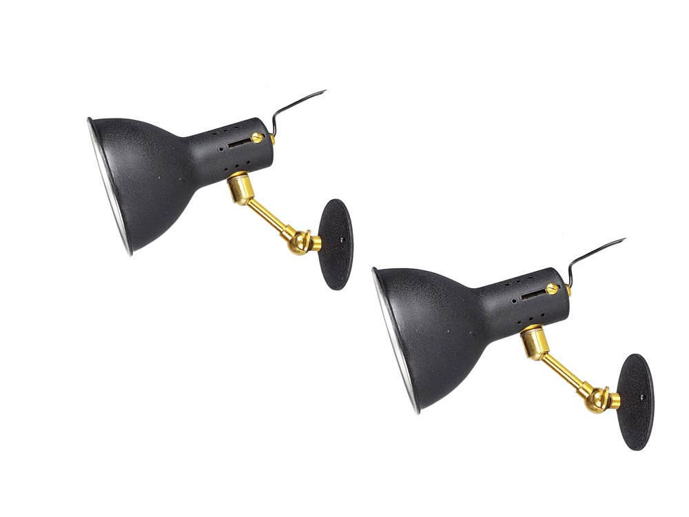 Verstellbare Mid-Century Wandlampen aus Schwarz lackiertem Aluminium & Messing, 1950er, 2er Set