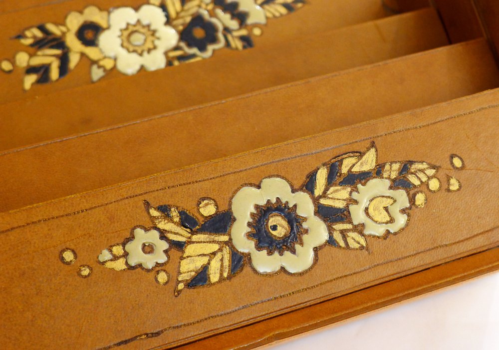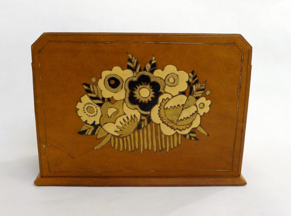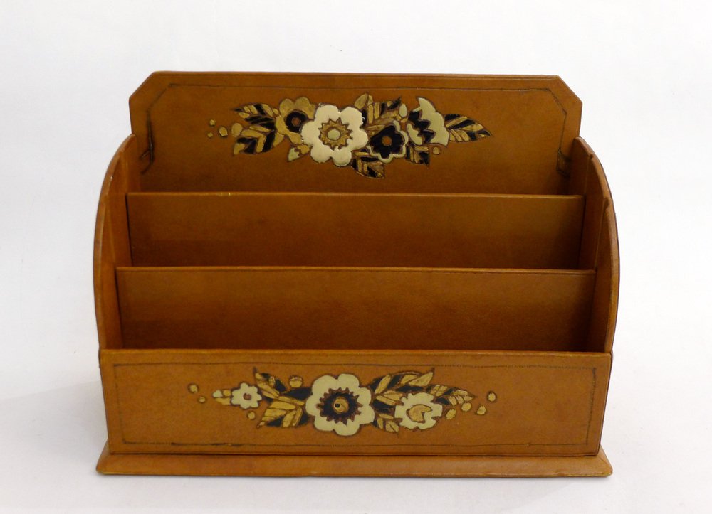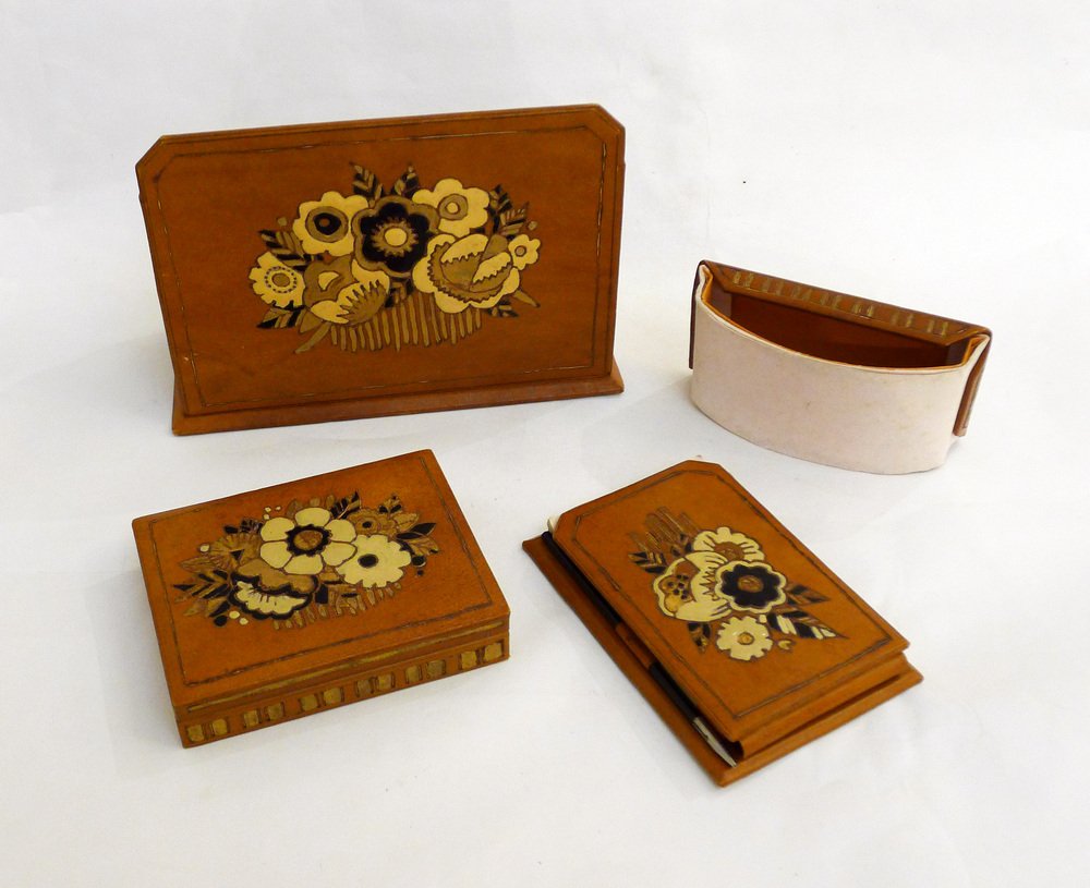 Vintage Art Deco Schreibtisch Set aus Leder, 1920er, 4er Set
