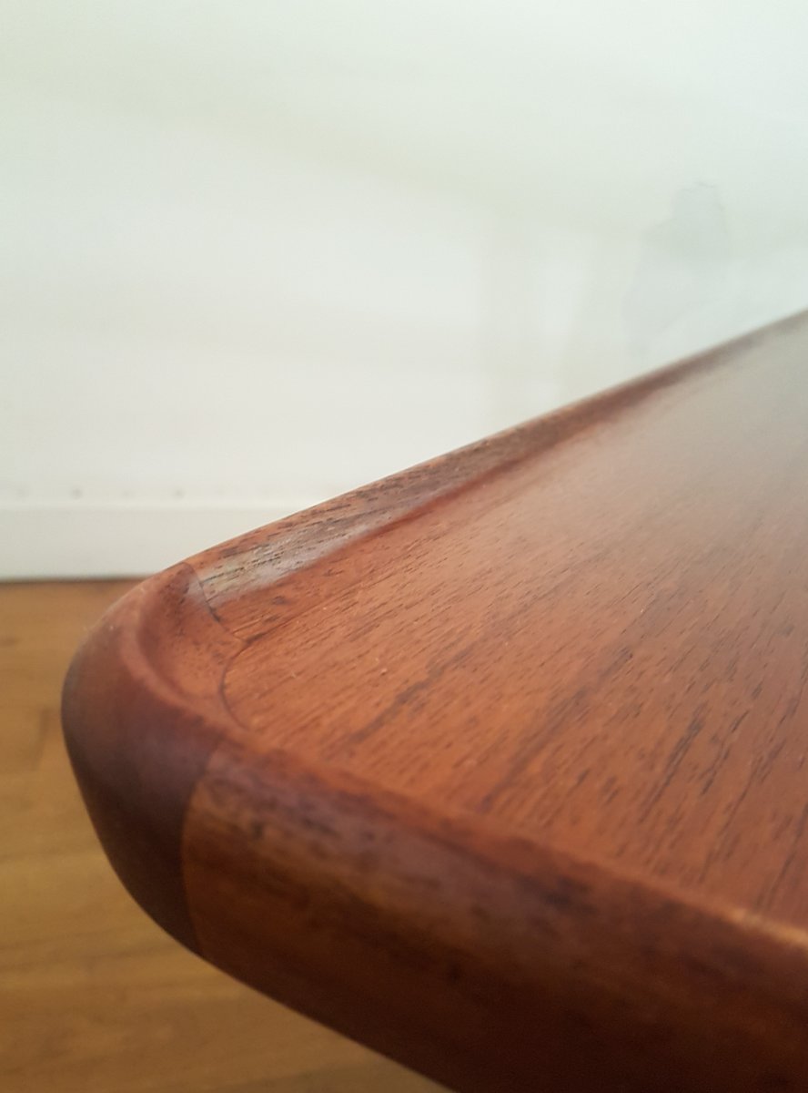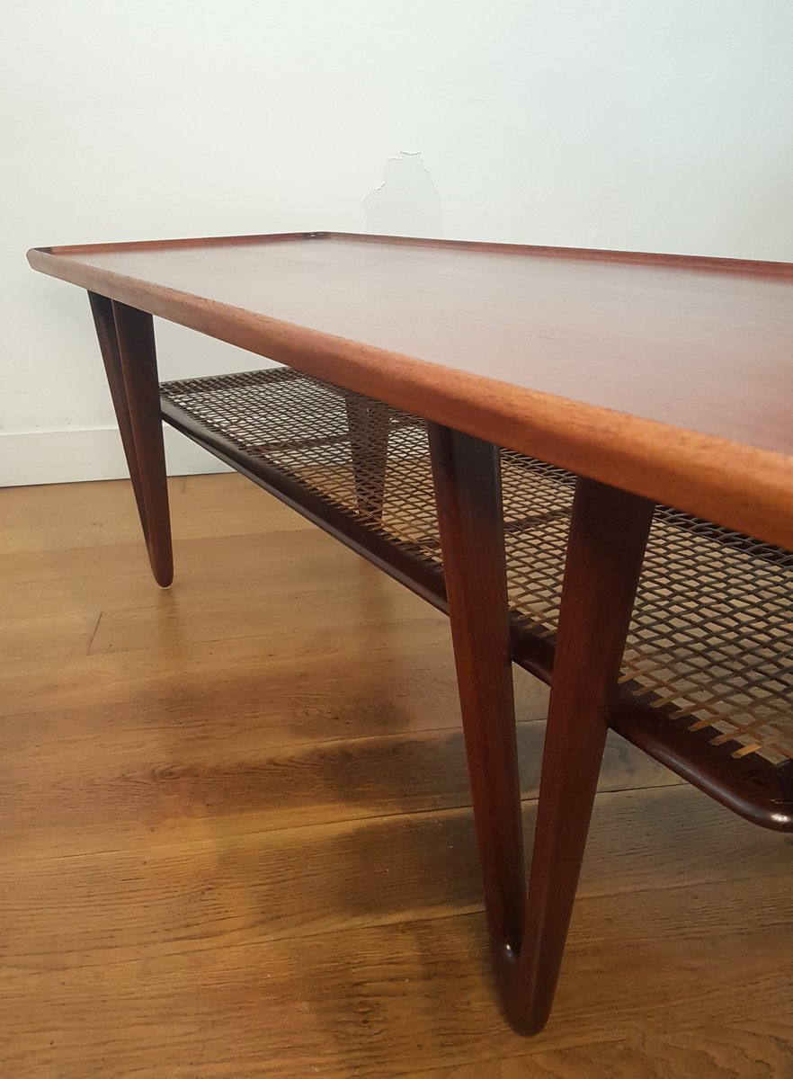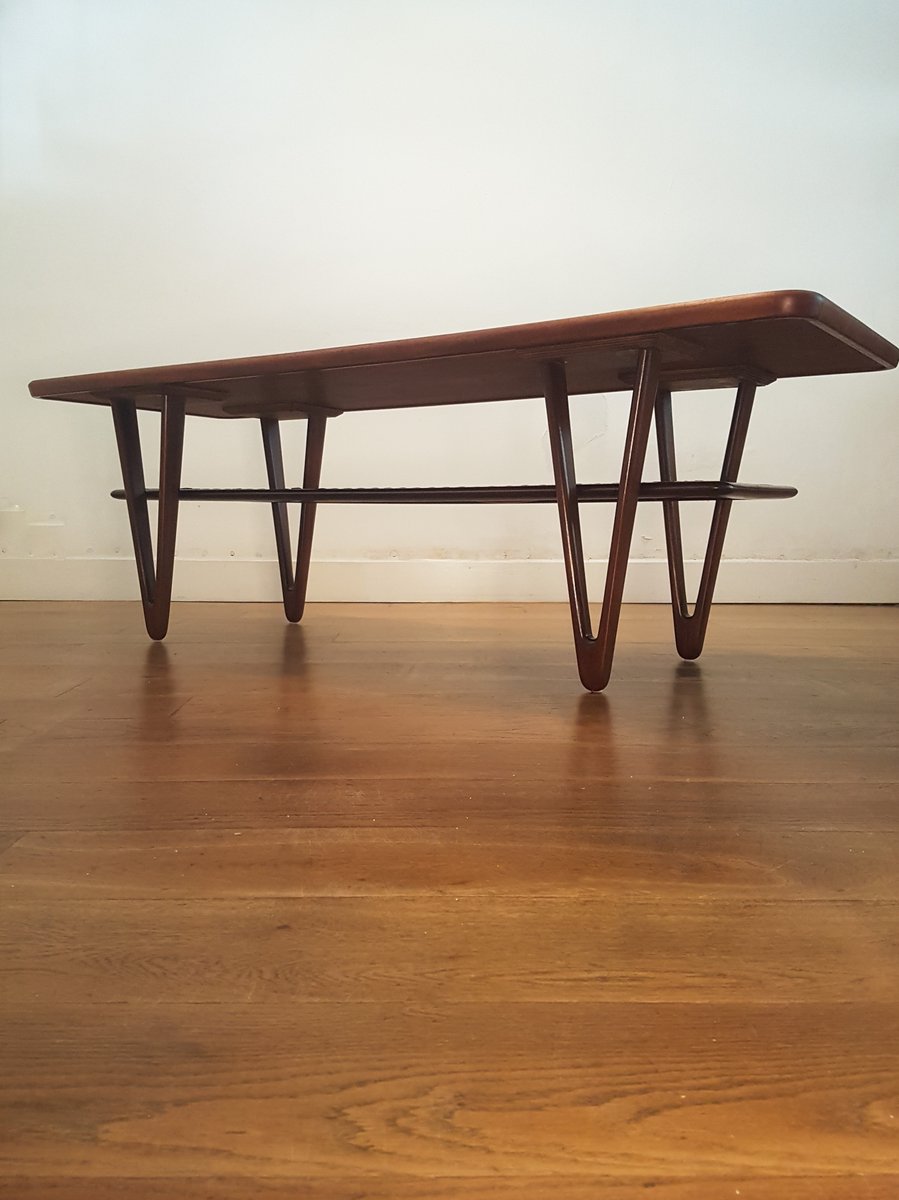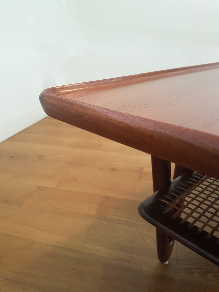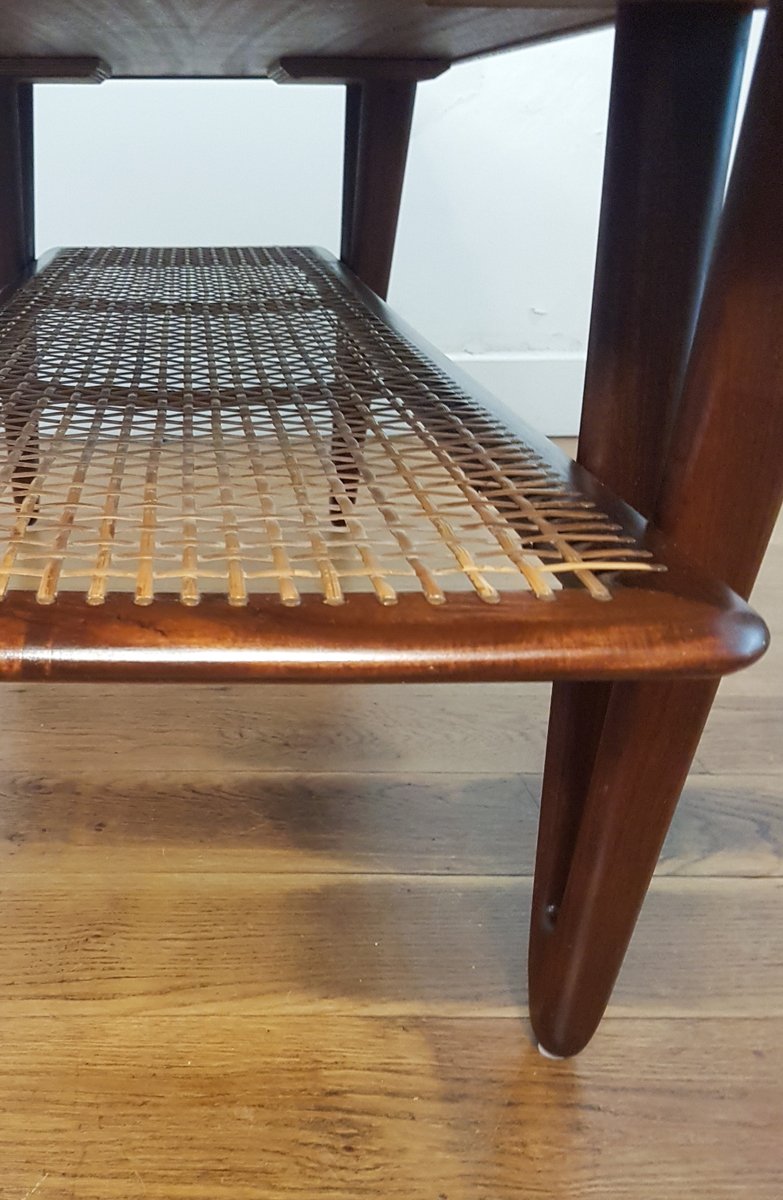 Vintage Couchtisch aus Teak & Rohrgeflecht mit V-förmigen Beinen, Kurt Østervig zugeschrieben, Dänemark, 1950er