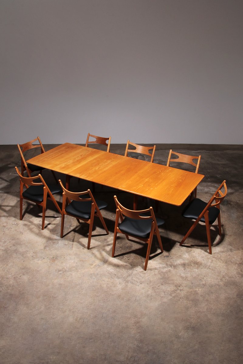 1951 machten die beiden, gemeinsam mit Kold Christensen, ihre Partnerschaft offiziell, indem sie die Verkaufsgruppe SALESCO gründeten. Während der 1950er und 60er war SALESCO ein einzigartiges Marketing Team, welches die Aufgabe hatte, Hans J. Wegners Arbeiten in Dänemark und im Ausland zu bewerben. Gleichzeitig spielte die Gruppe auch eine wichtige Rolle dabei, die dänische Mid-Century Design-Identität im Allgemeinen voran zu treiben. Weitere berühmte Designs von Wegner für Carl Hansen & Søn sind der CH29 Sawbuck Stuhl (1952), der dreibeinige CH07 Shell Stuhl (1963)—welcher für den inzwischen ikonischen Wettbewerb des MoMA für günstige Möbelstücke designt wurde—der CH20 Elbow Stuhl (1956) und der CH88 Stuhl (1955), welcher lediglich als Prototyp existierte bis er 2014 produziert wurde um den hundertsten Jahrestag von Wegners Geburt zu feiern.