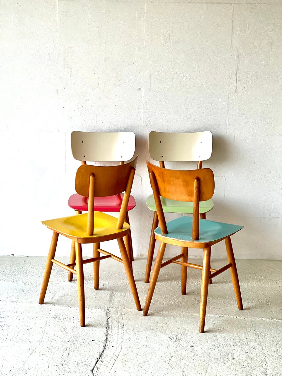 Vintage Esszimmerstühle von Ton, 1950, 4er Set