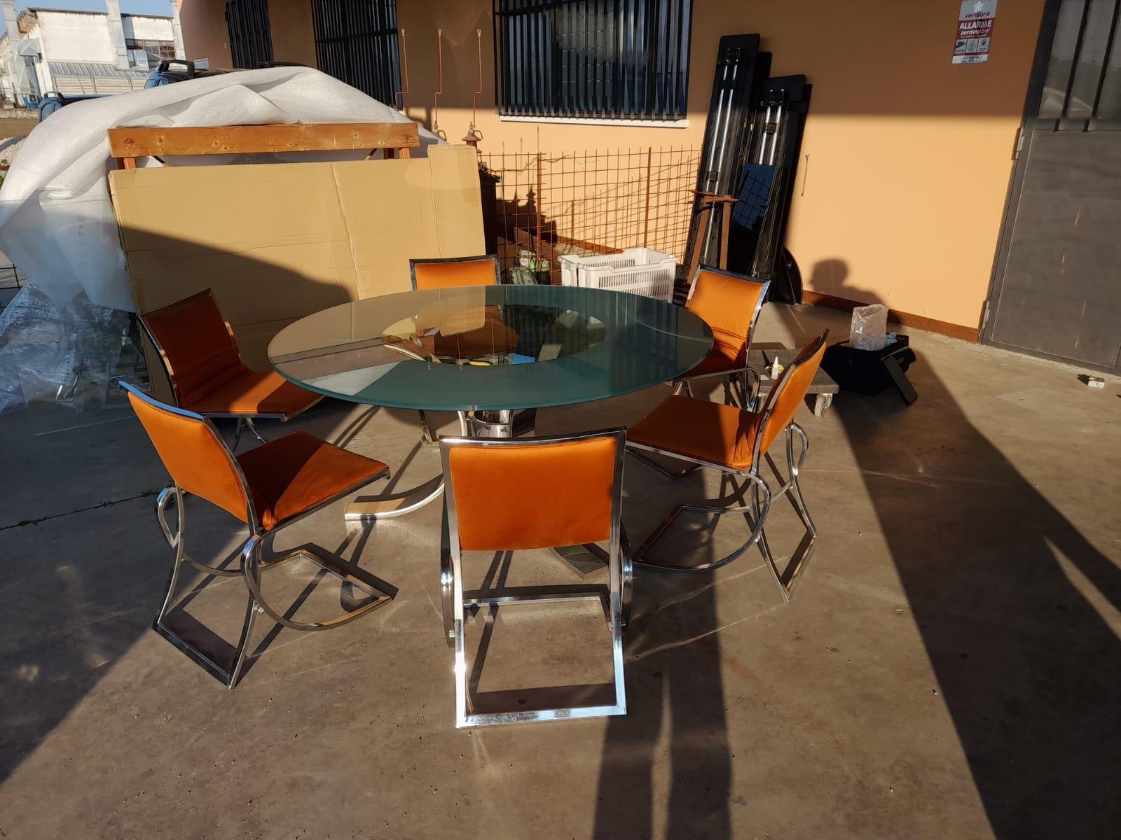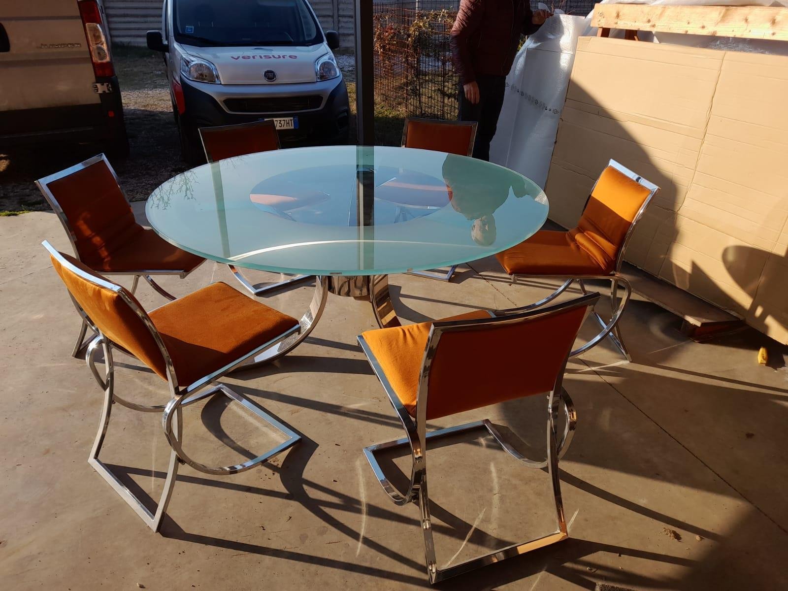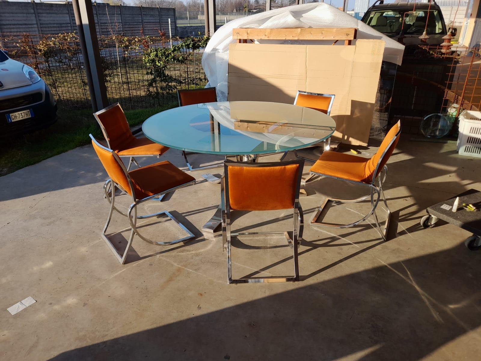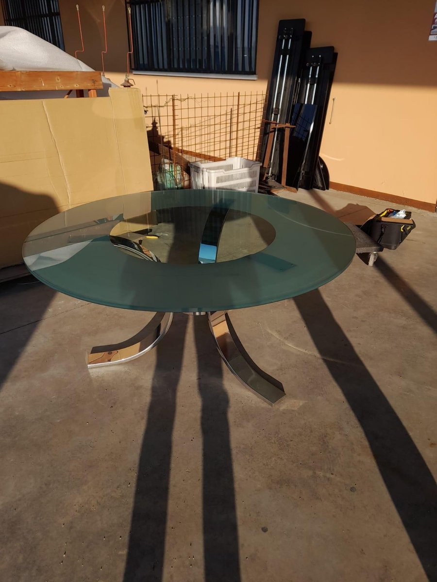 Vintage Glastisch mit verchromten Beinen, 1970er