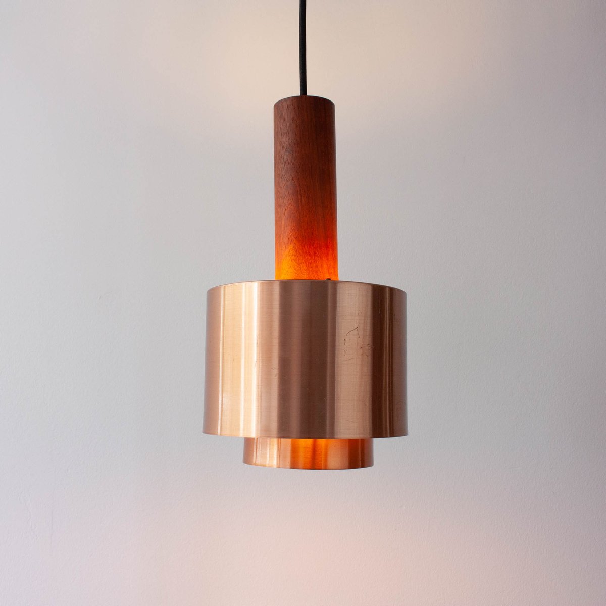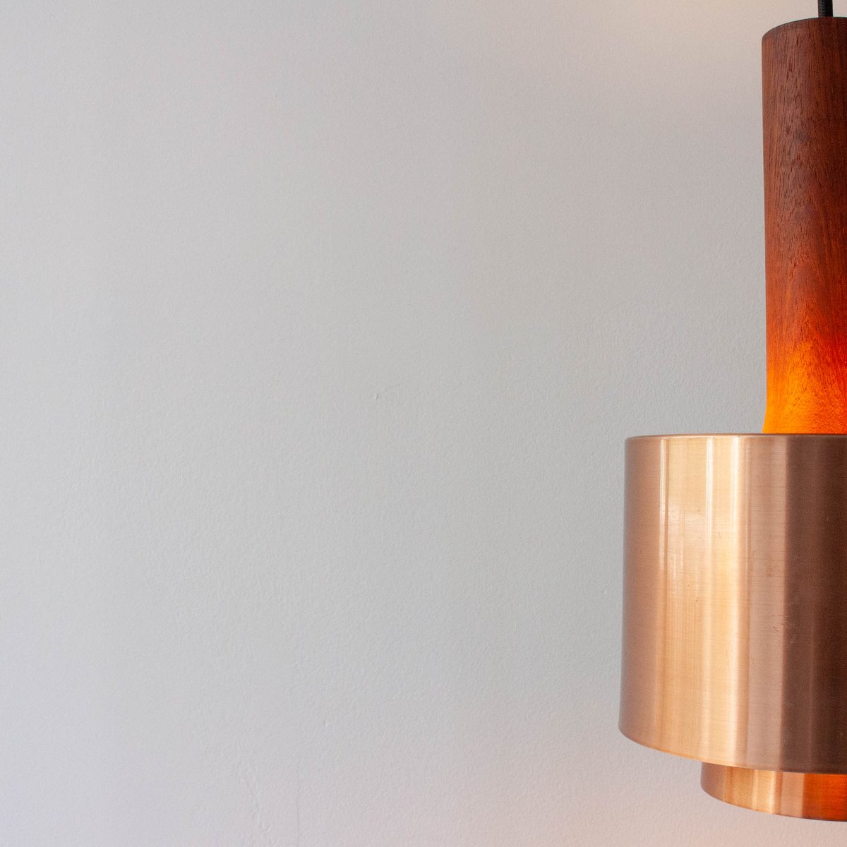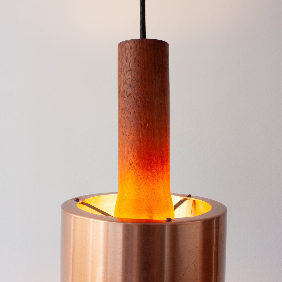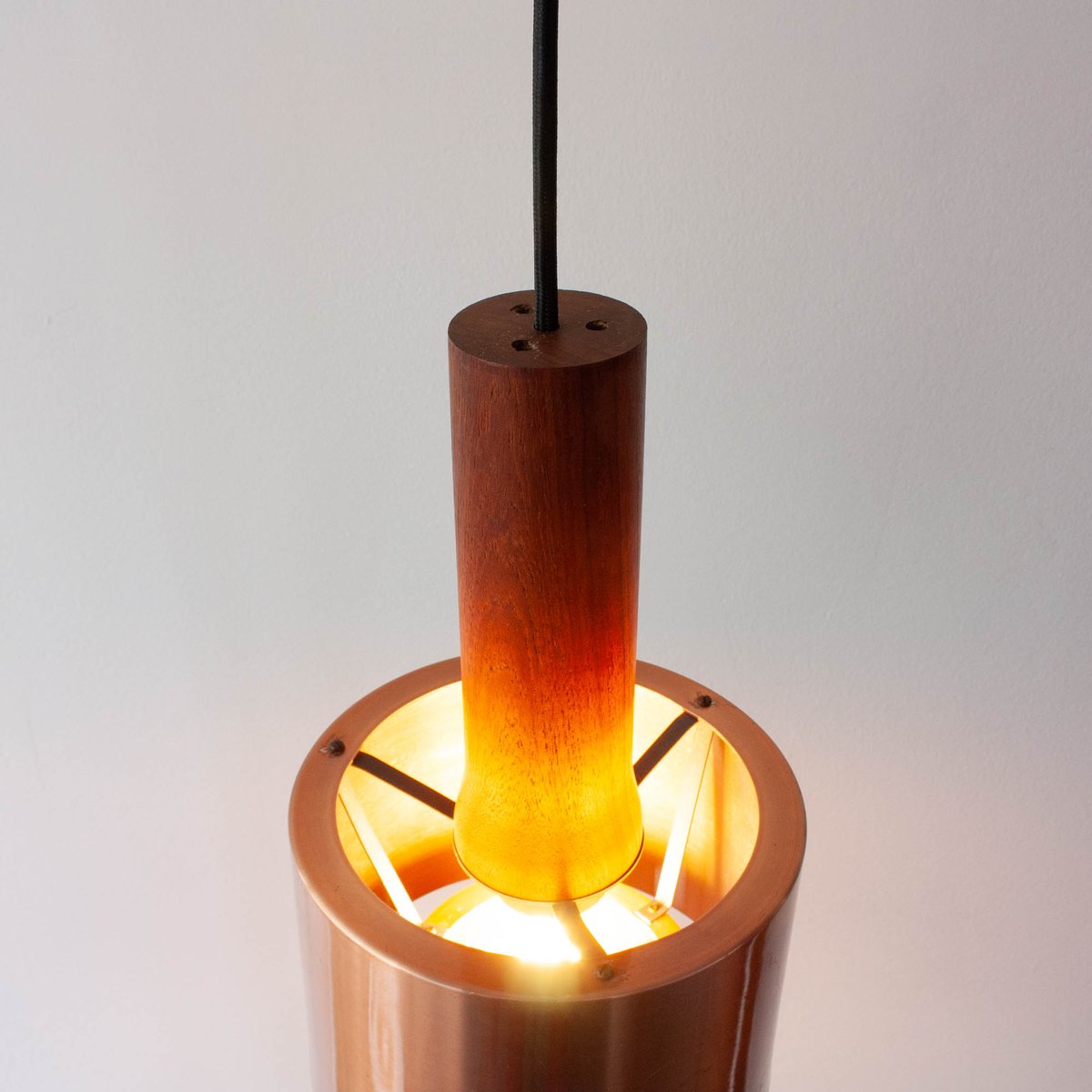 Vintage Hängelampe aus Kupfer & Teak, Dänemark, 1960er
