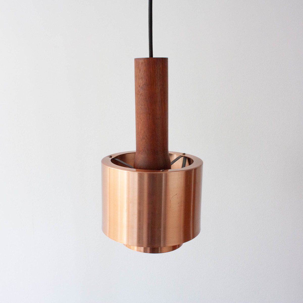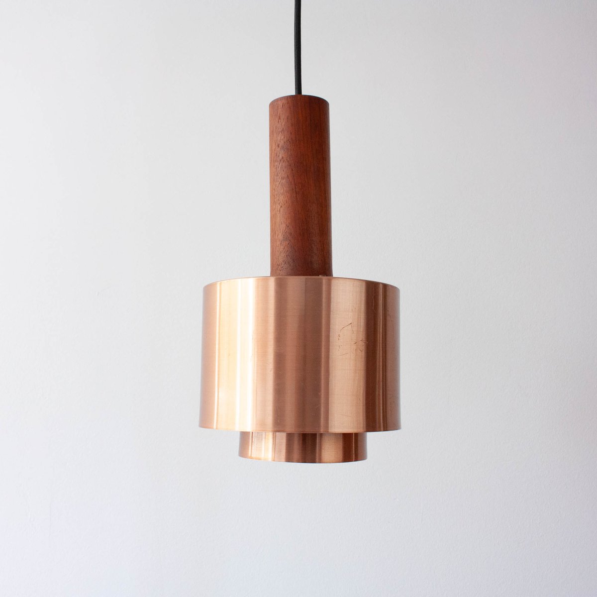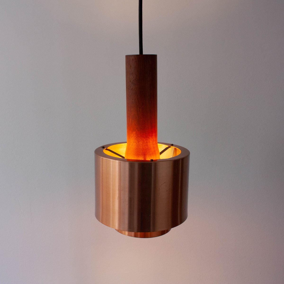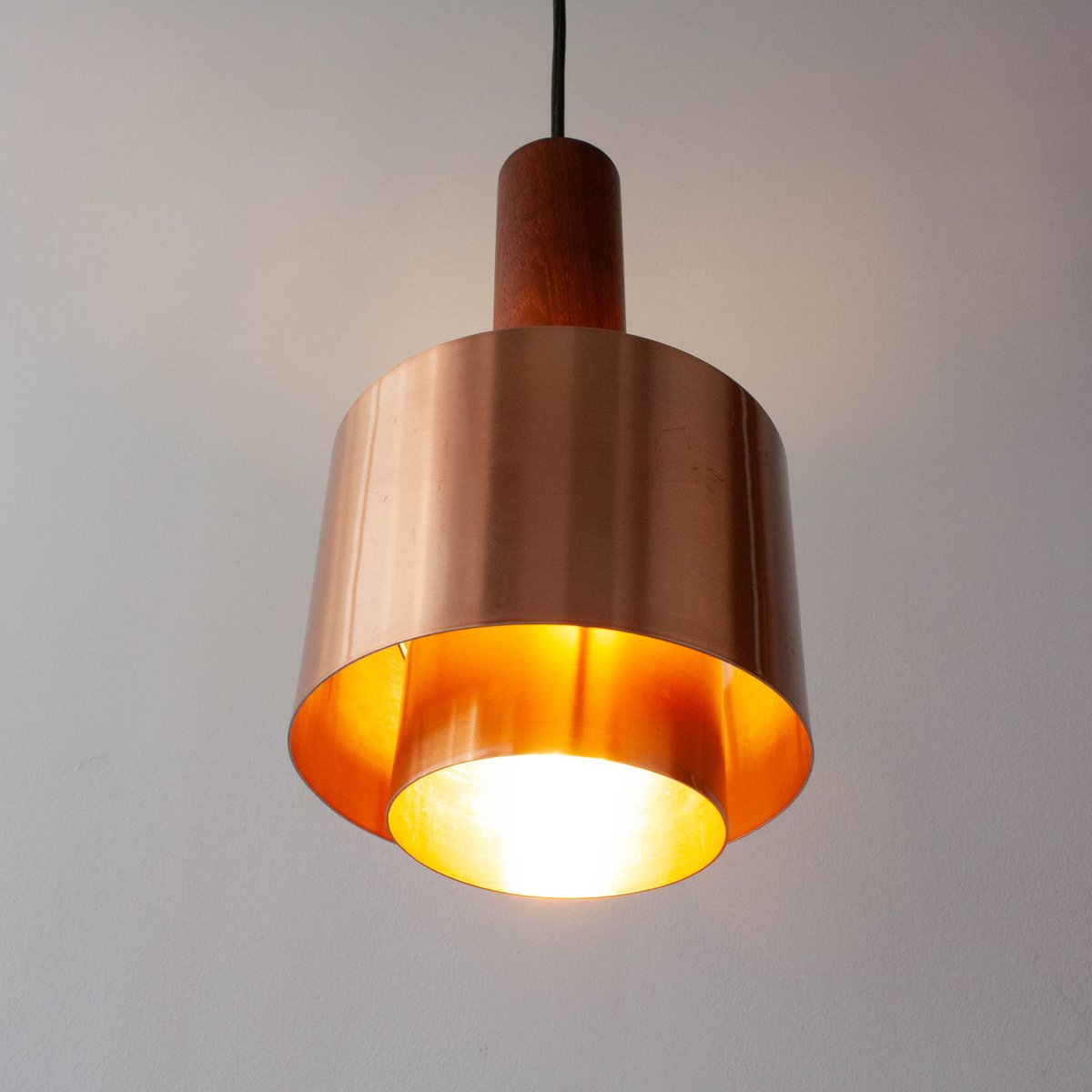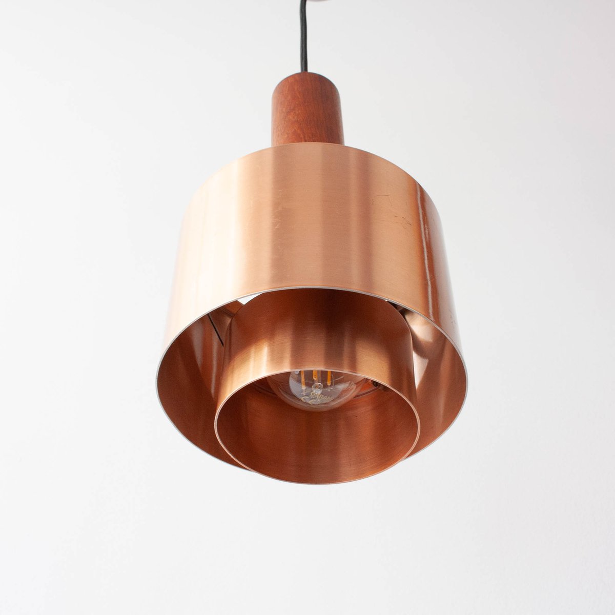Vintage Hängelampe aus Kupfer & Teak, Dänemark, 1960er