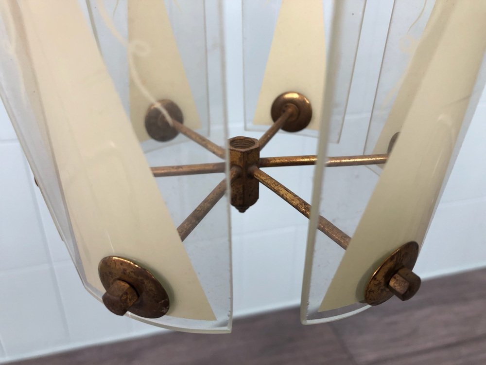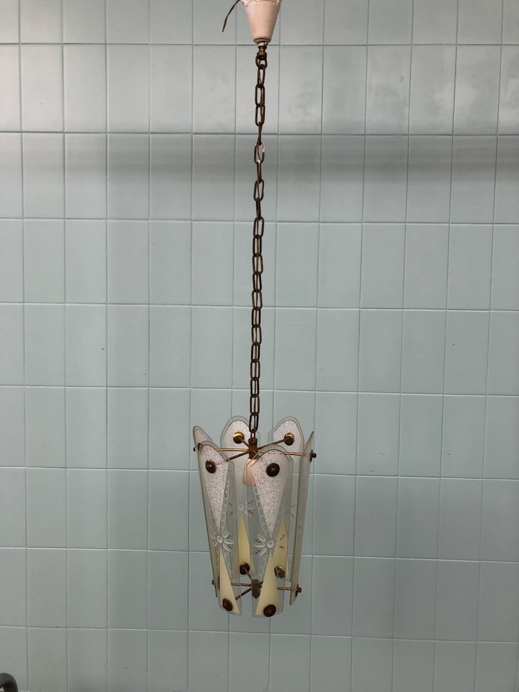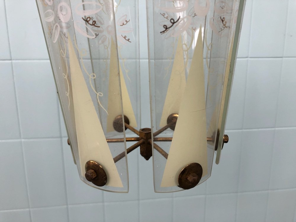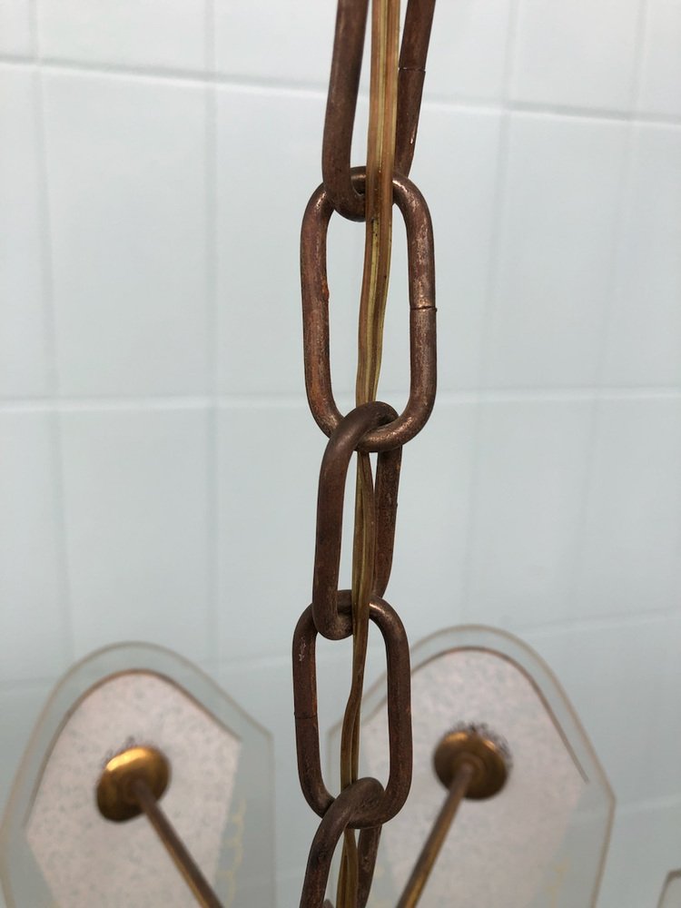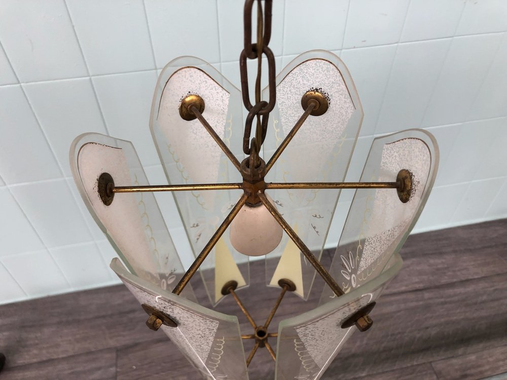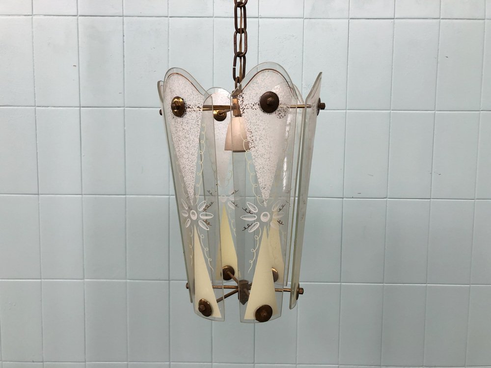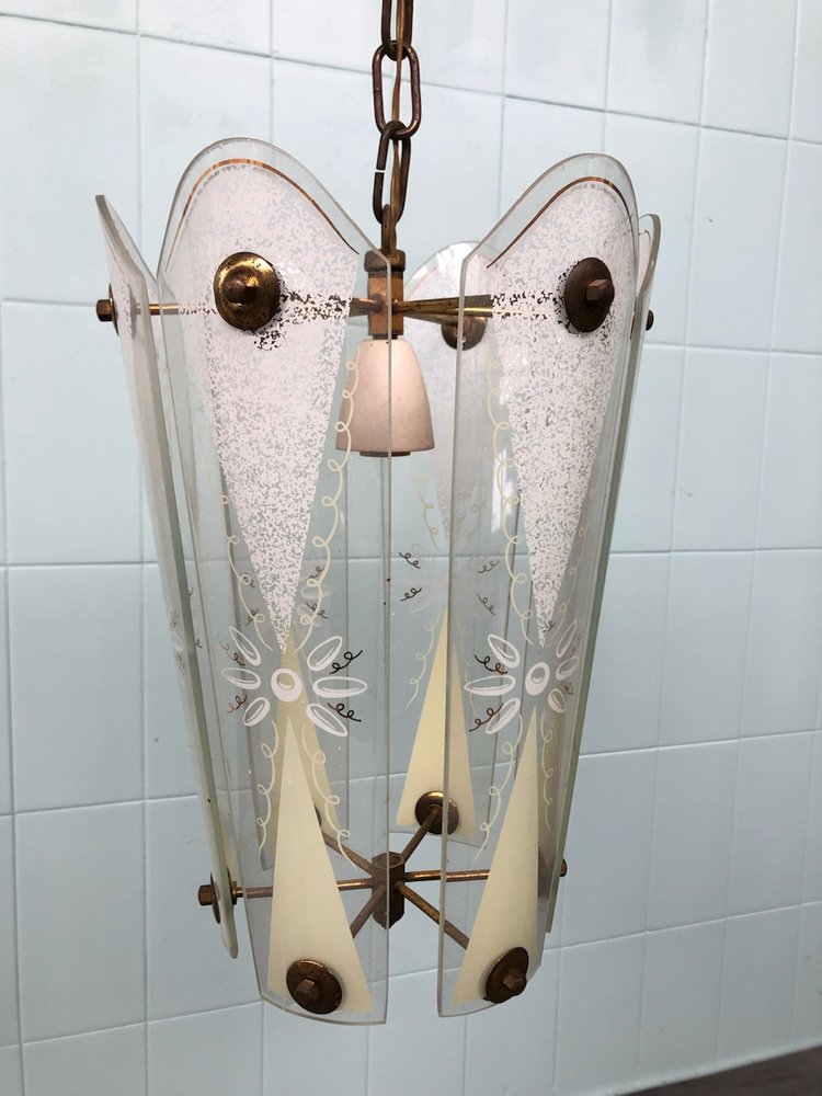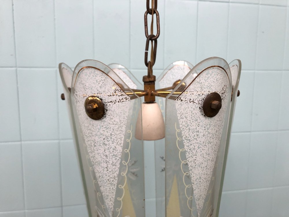 Vintage Hängeleuchter aus Messing & Verzierten Glas Lampenschirmen, Italien, 1950er