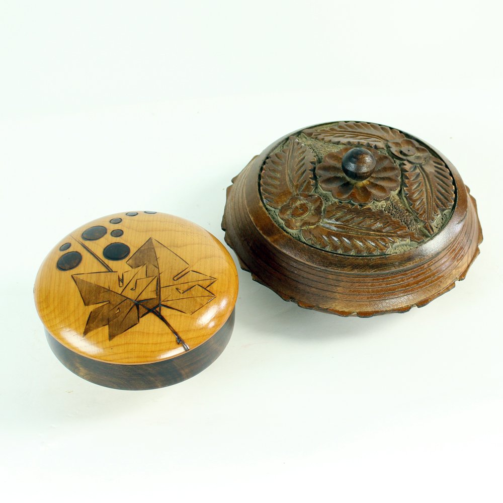 Vintage Handcrafted Bowls in Wood, Czechoslovakia, 1960s, Set of 2