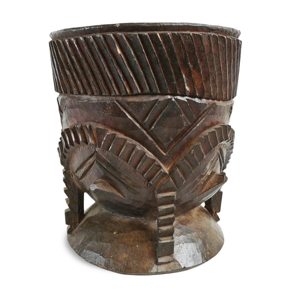 Vintage Nupe Pot aus geschnitztem Holz