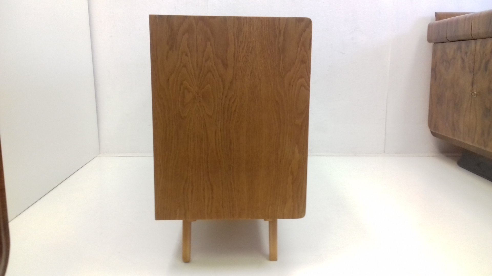 Born sometime around 1912 or 1913 (his specific birth date remains unpublished), Jiroutek spent his adolescence in the provincial Bohemia town of Chrudim, where he attended secondary school. Like seminal Czech industrial designer Jindrich Halabala, Jiroutek completed his professional studies at Prague’s Academy of Applied Arts (today, the Academy of Arts, Architecture & Design). In 1951, Jiroutek began his career at the just-born Interier Praha. In contrast to Halabala and the other midcentury Czech modernists, Jiroutek, it seems, never worked for the other prominent national furniture manufacturers like TON, and UP Závody.