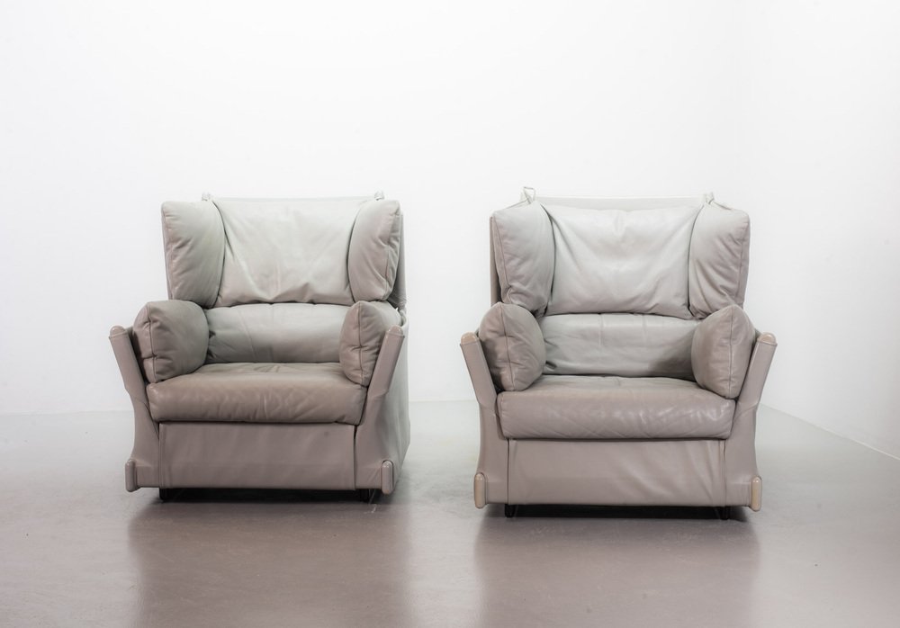 Braune Ledersessel von Leolux, Niederlande, 1970er, 2er Set