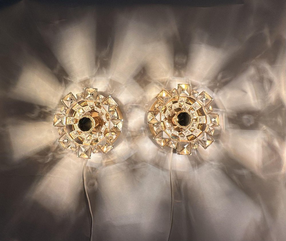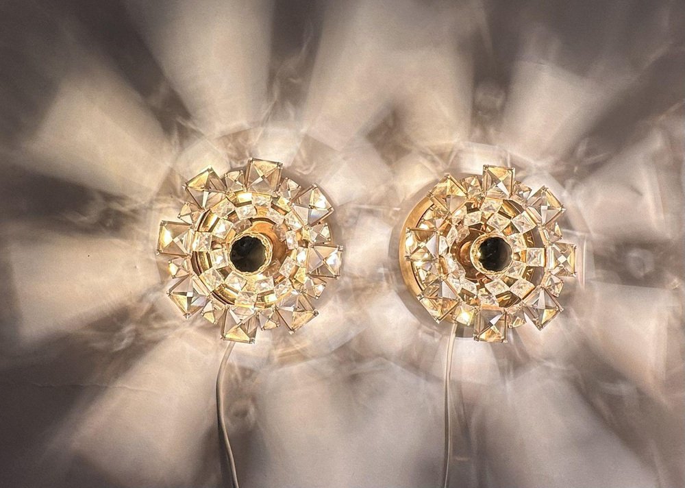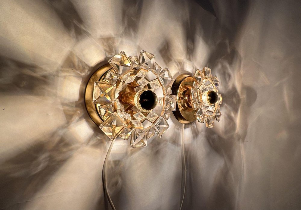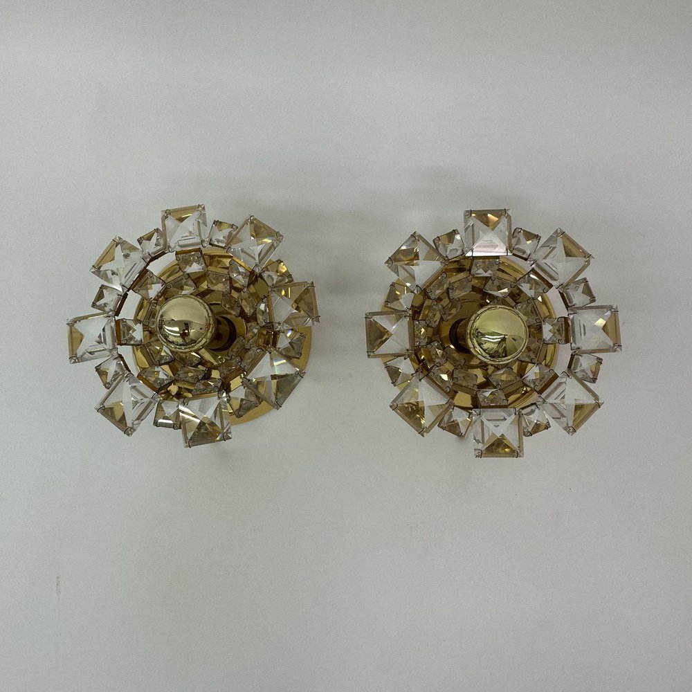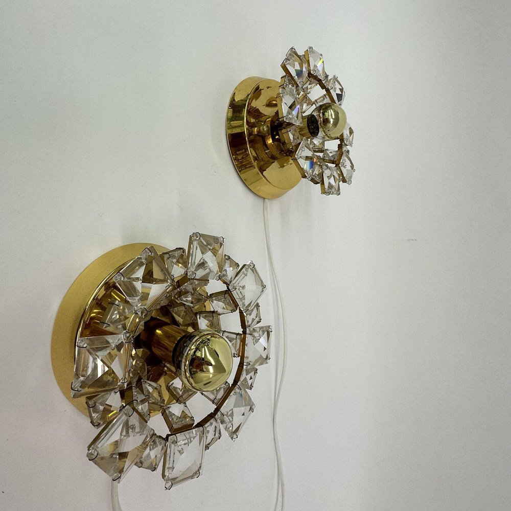 Wandlampen aus Kristallglas von Palwa, Deutschland, 1970er, 2er Set