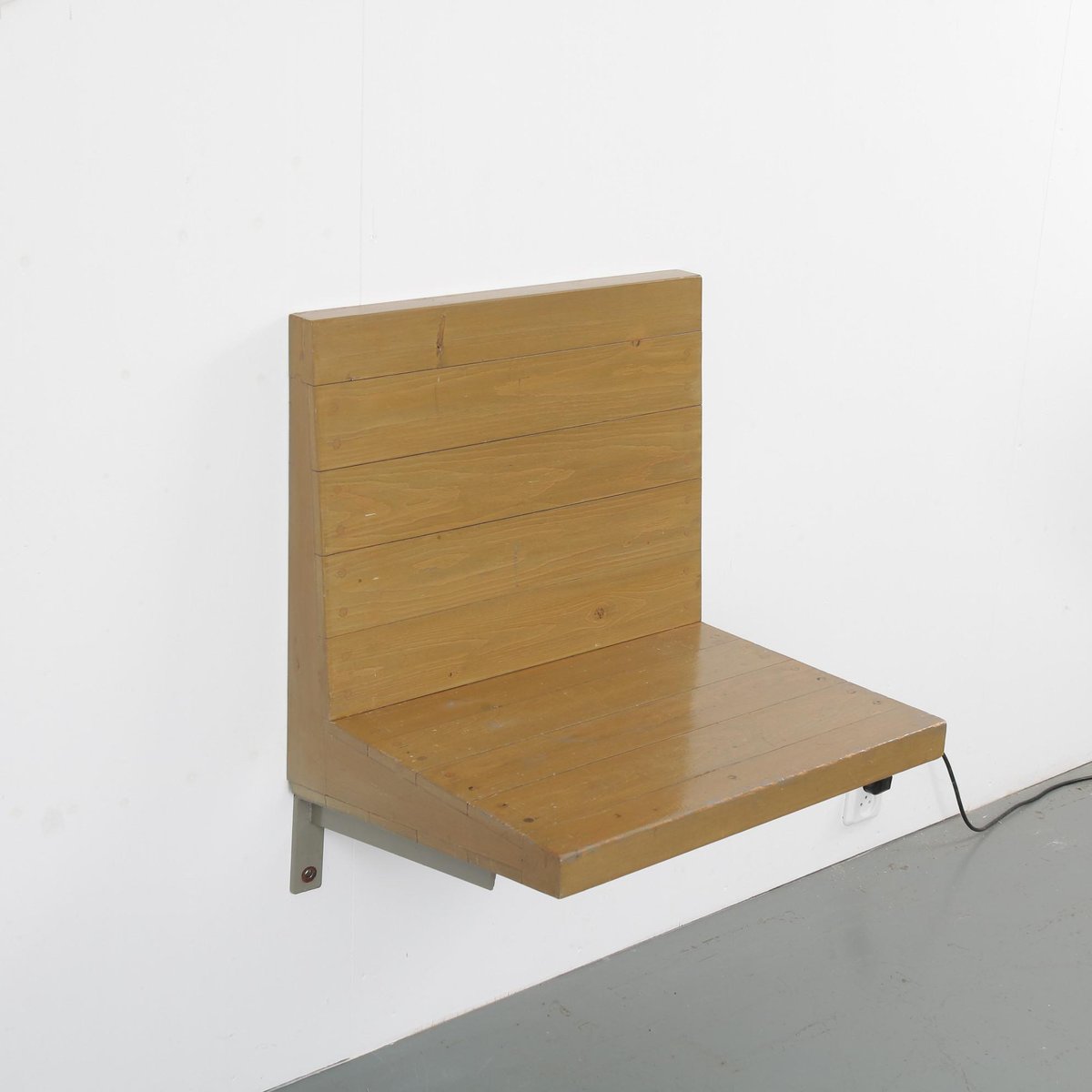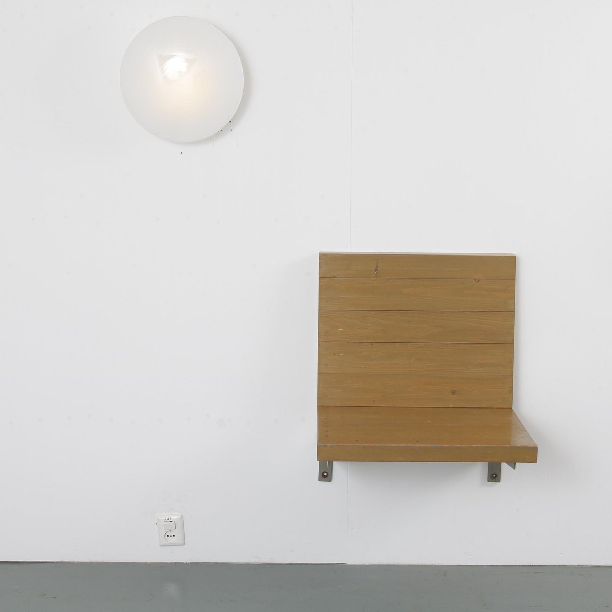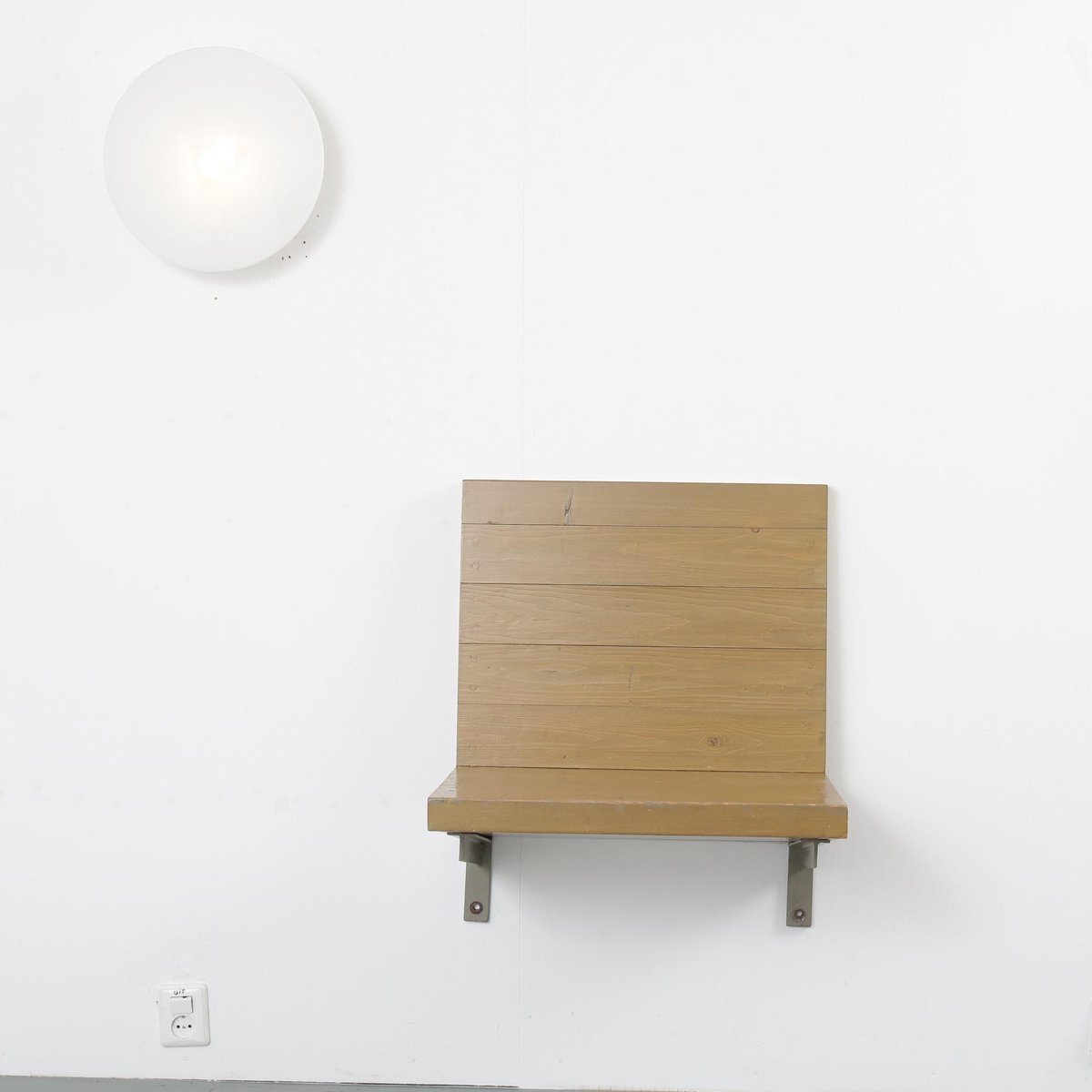This iconic, wall mounted seat was designed by Dom Hans van der Laan in the Netherlands in the 1970s. It’s eye-catching, minimalist design is highly recognizable and one of the most beautiful examples of mid-century Dutch design. The seat is made of wood, it has a metal structure and copper nails. This quality seat is a true piece of (Dutch) design history! It comes from a doctor’s practice in the Dutch town Sint-Michielsgestel. The building was designed in the Bossche School style by Vermeulen architect’s office in Veldhoven, the Netherlands. We have the original architect’s drawings available, as well as photos of the practice. It remains in good original condition, with minor wear consistent with age and use, preserving a beautiful patina. Dom Hans van der Laan, originator, architect, designer. Benedictine monk and architect Hans van der Laan (1904-1991) may have had a small body of work, but his legacy is highly regarded in the world of architecture. Although he designed three monasteries and a private dwelling, it was not until he reached the age of 53 that he completed his first real design, the St Benedictusberg Abbey in Vaals of which this bench is from. The building was immediately acclaimed as his masterpiece. The greatest part of Van der Laan’s life, however, was dedicated to conceptualizing form, proportion and the way in which human beings perceive architectural spaces. He also developed the theory of plastic numbers.