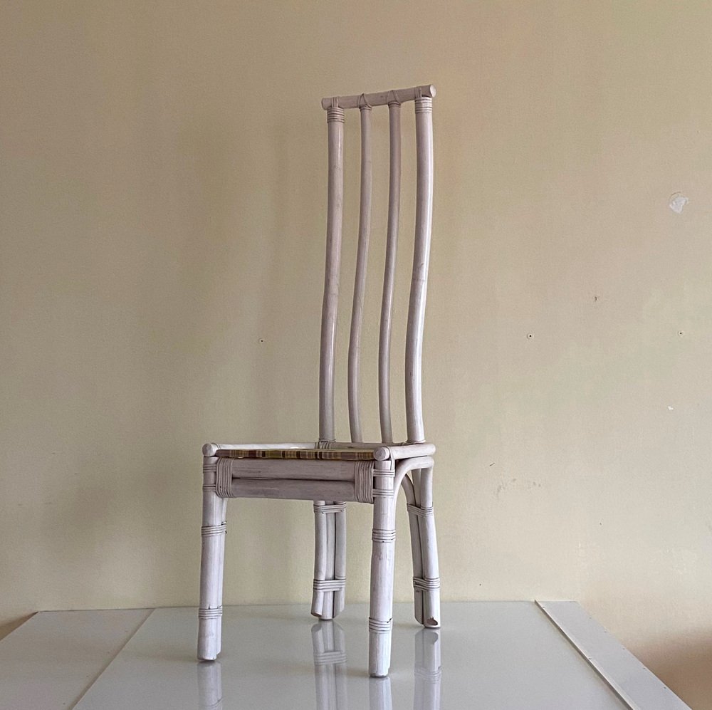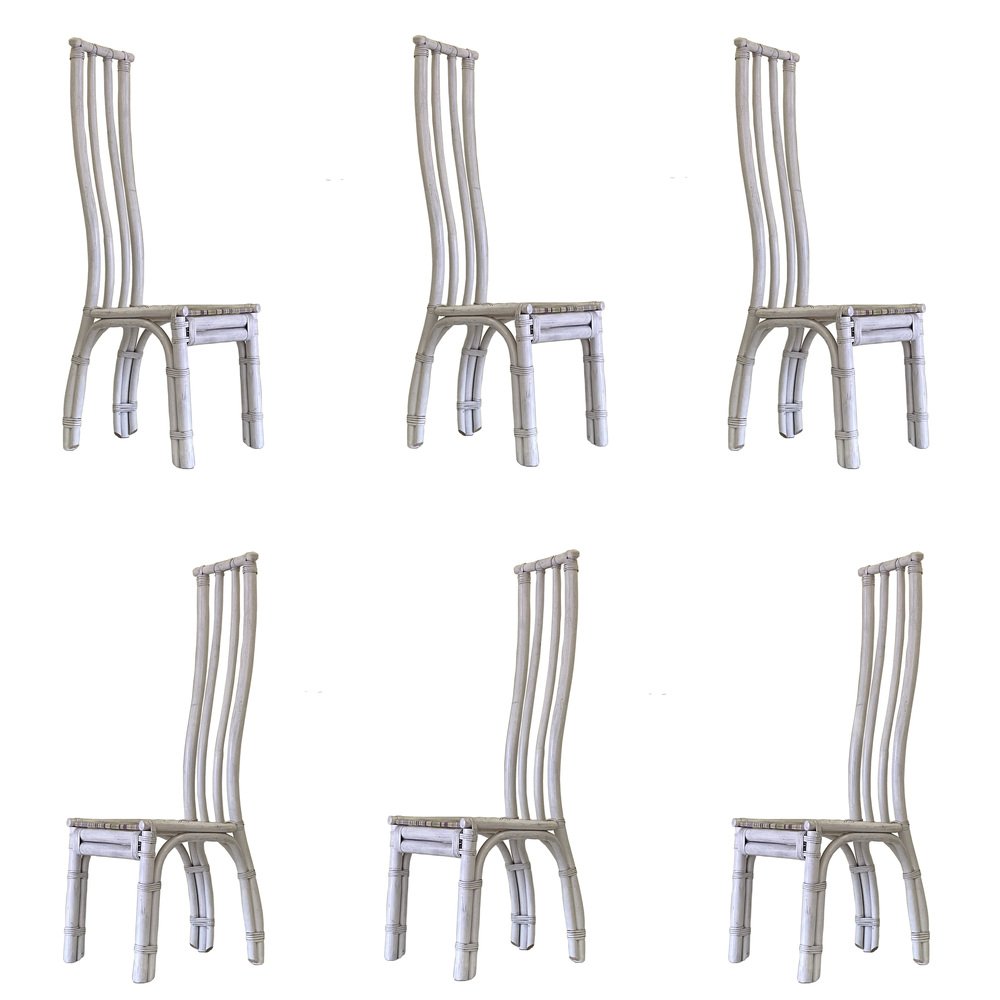 Weiße Italienische Bambus Stühle, 1970er, 6 . Set
