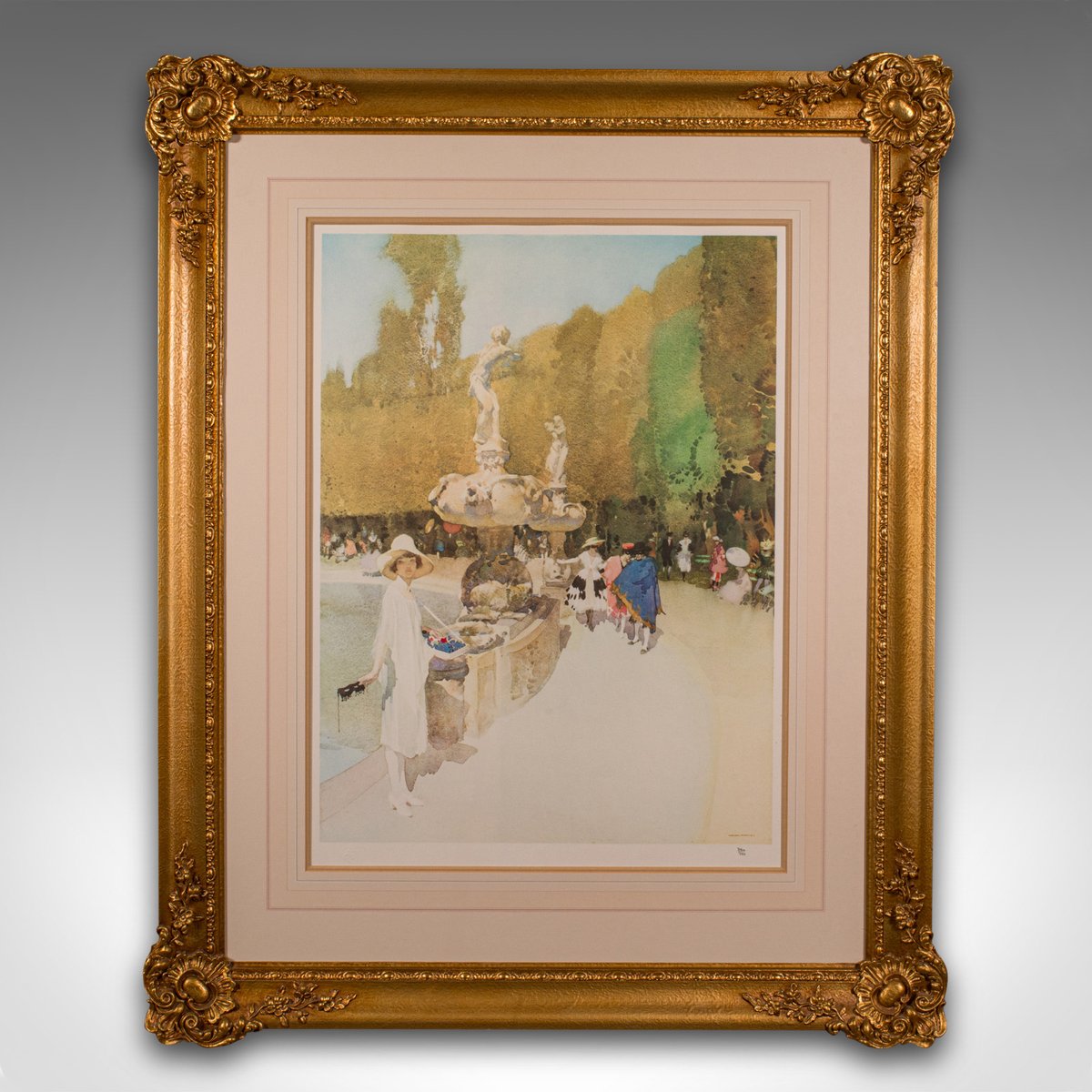 This is a delightful vintage art print, a limited edition copy of William Russell Flint's 'Florentine Masquerade' set within a quality gilt frame. Delivered ready to display.