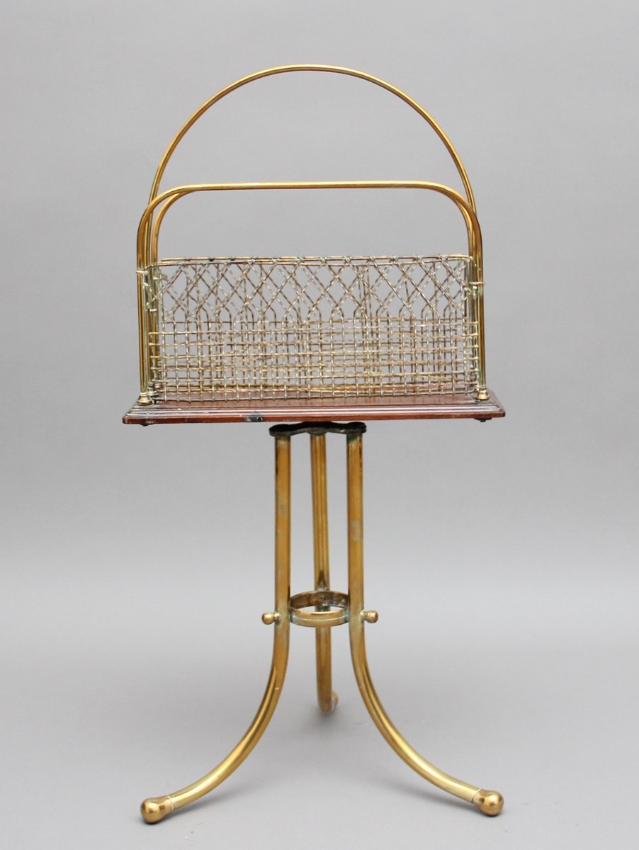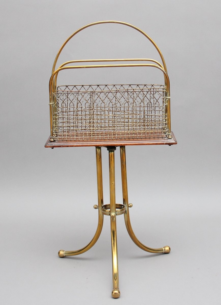 Zeitschriftenständer aus Messing & Mahagoni, 1880er