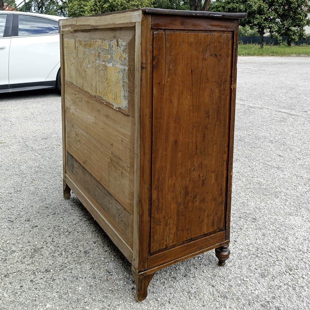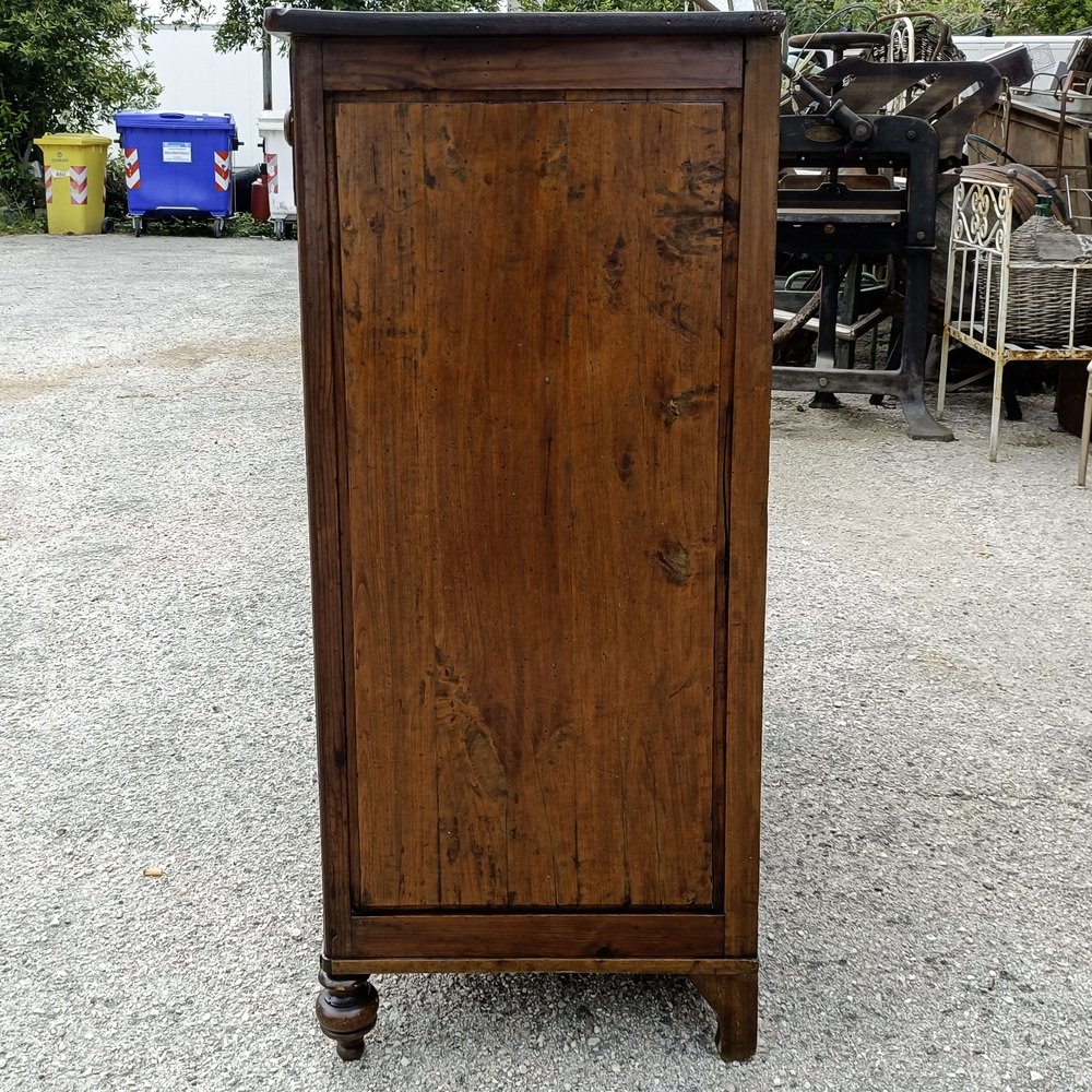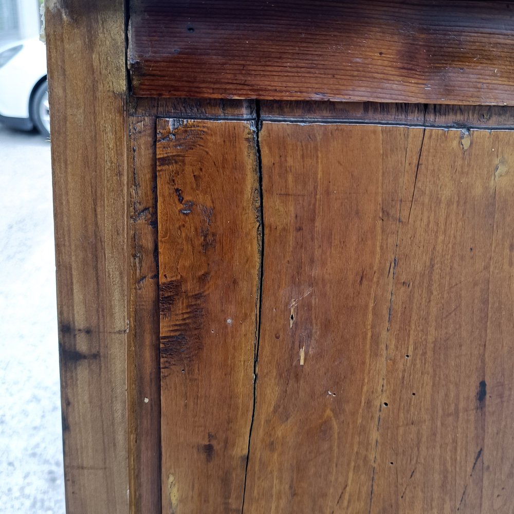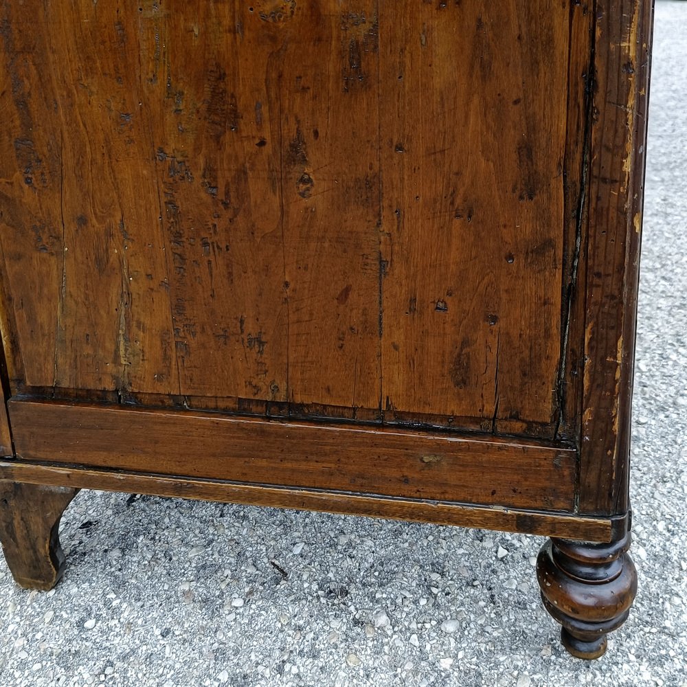 Rustic two-door kitchen sideboard made of solid fir from the 1800s with a large drawer with dovetail structure, turned foot, framed side. The lock is original from the time. Measurements 108 x 51 x h 114.Dimensions: Height 114 cm Width 108 cm Depth 51 cm Color: brown Material: wood, metal Conditions: Good vintage item, fully functional but shows signs of wear such as scratches, dents, material defects and repairs.